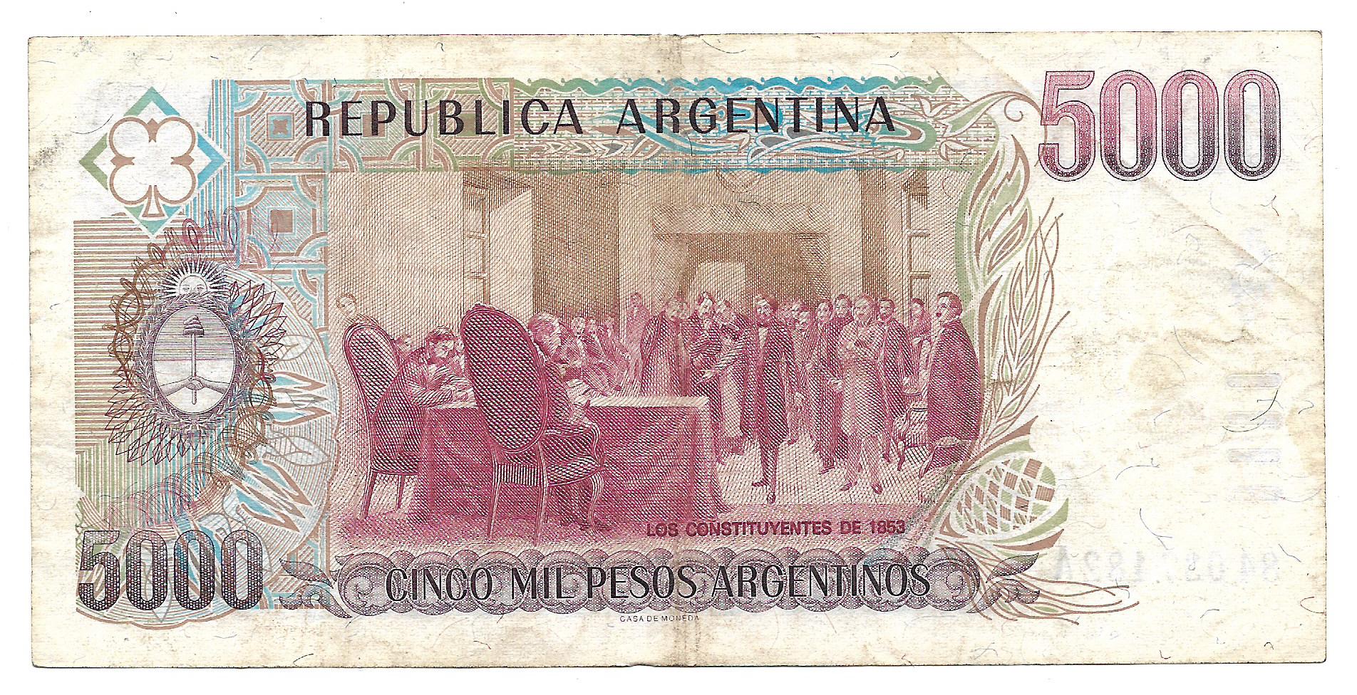 5000 Pesos Argentinos Bottero 2638a Lopez-G. Vazquez MB- cantidad