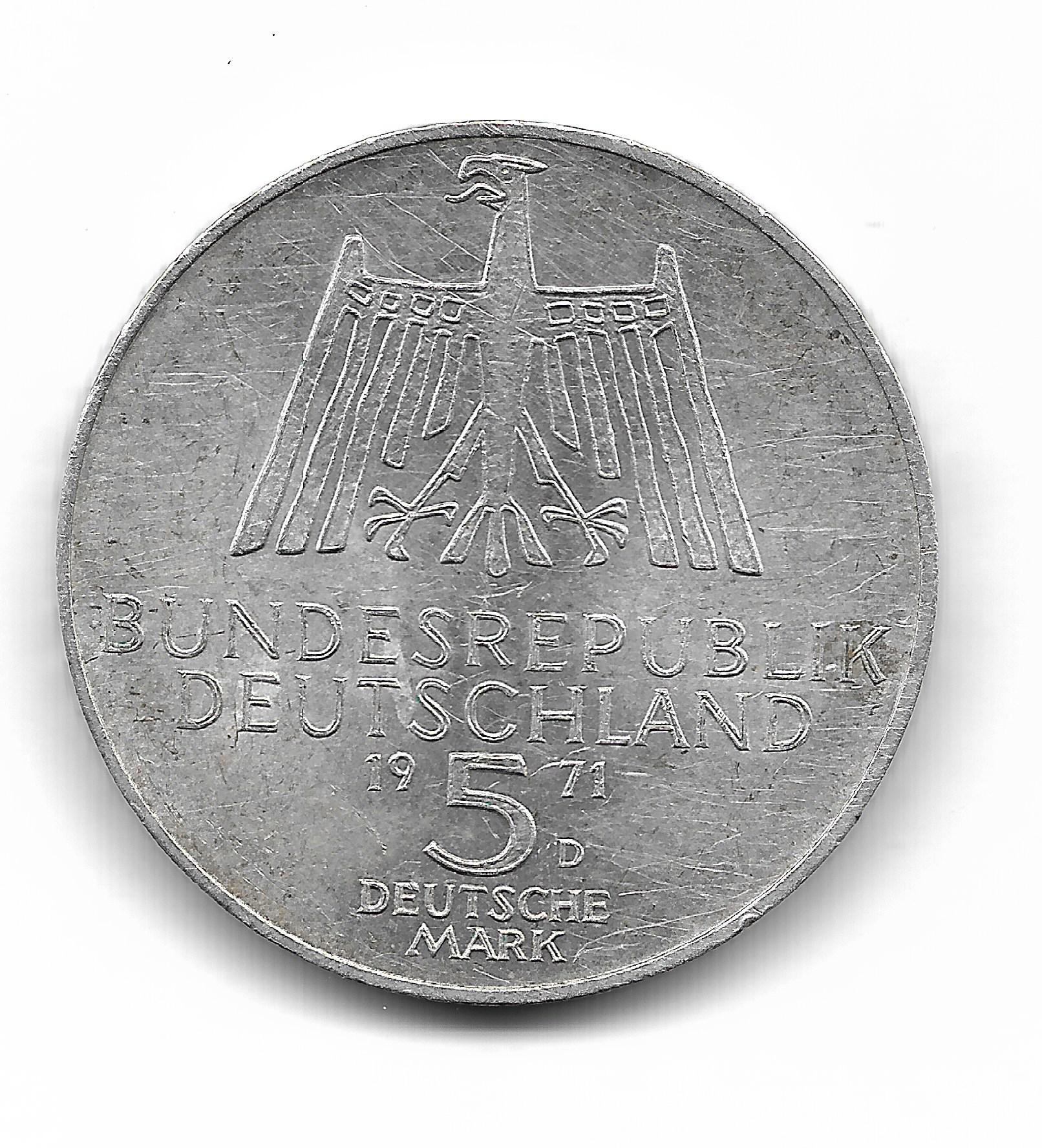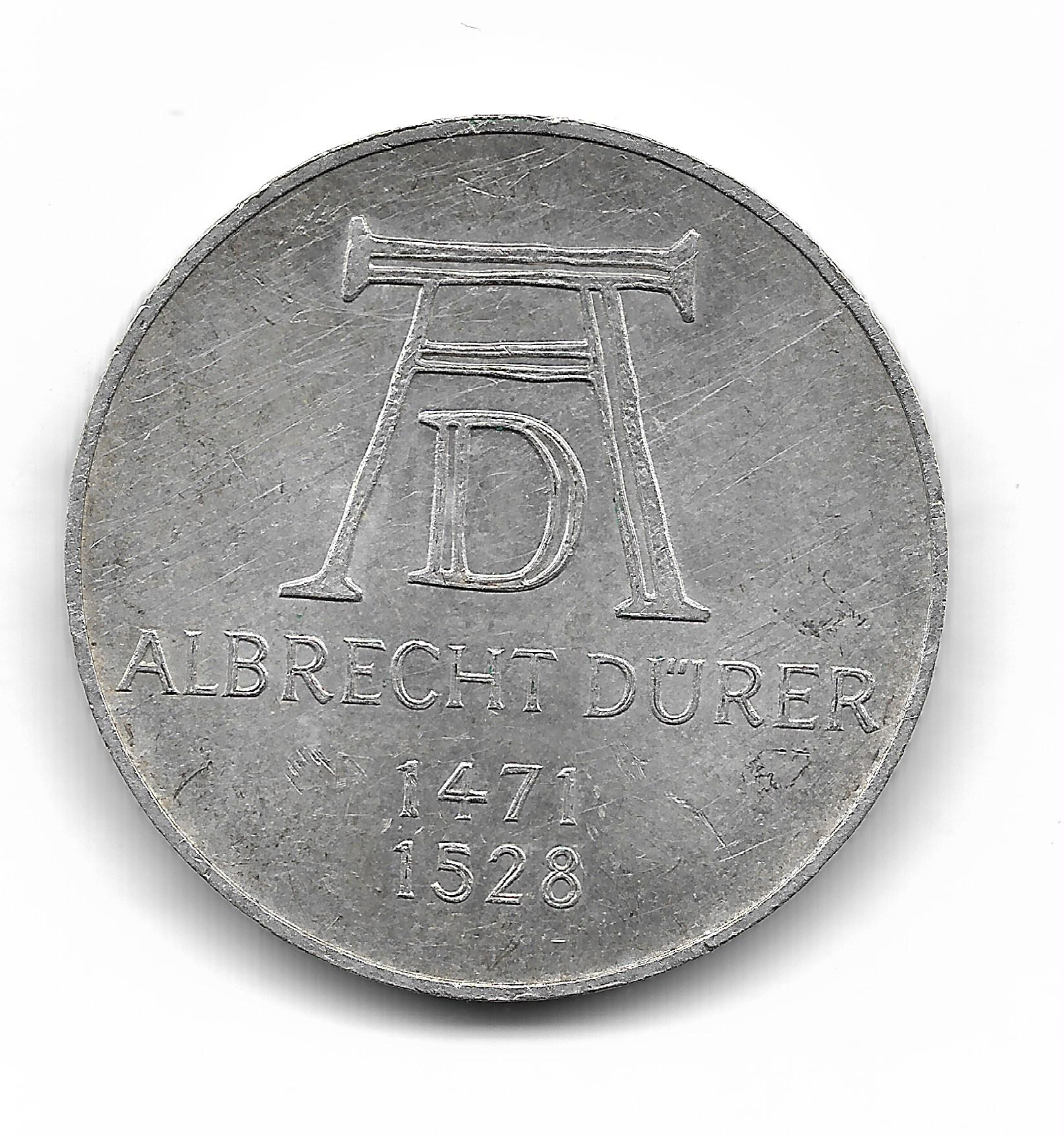 Alemania 5 Marcos de Plata 1971D Conmemorativa Alberto Durero KM129 EXC cantidad