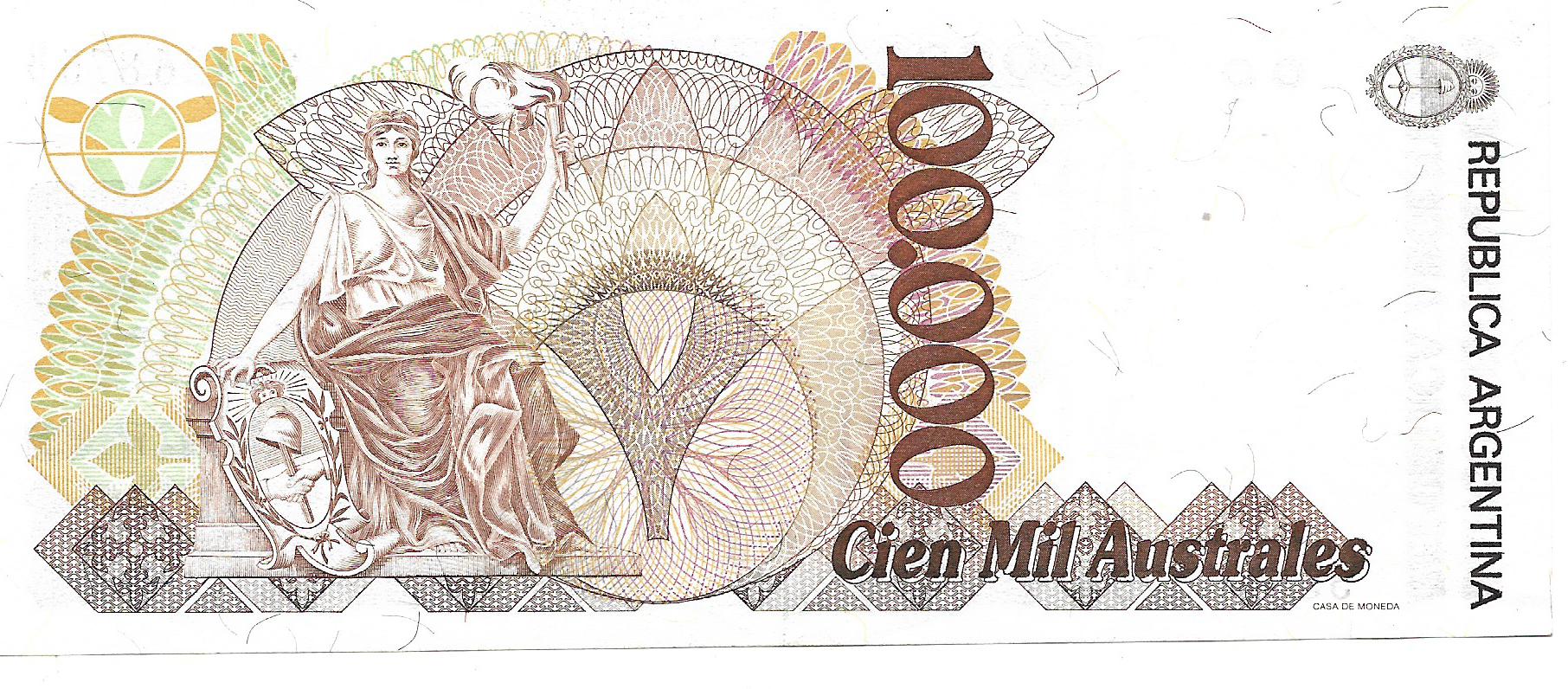 Argentina 100.000 Australes serie B Murolo-Fernandez Bottero 2895 EXC+