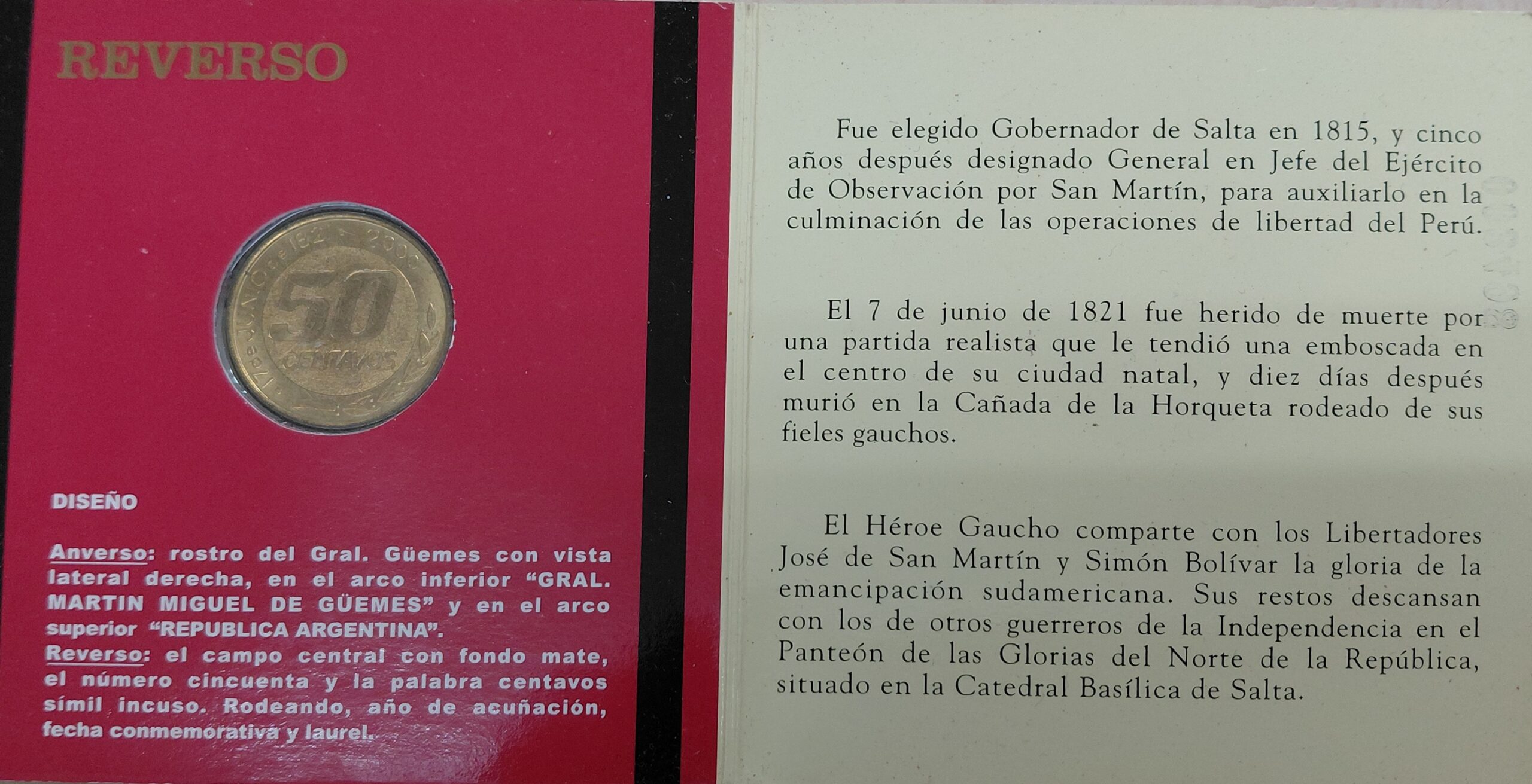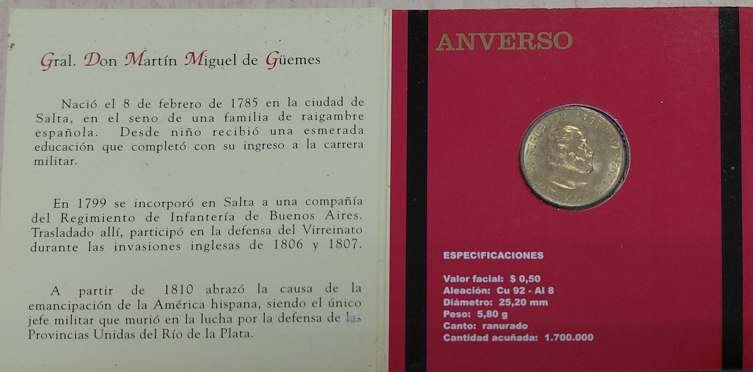 Argentina Blister 50 Centavos 2000 Guemes Canto Estriado BL38 cantidad