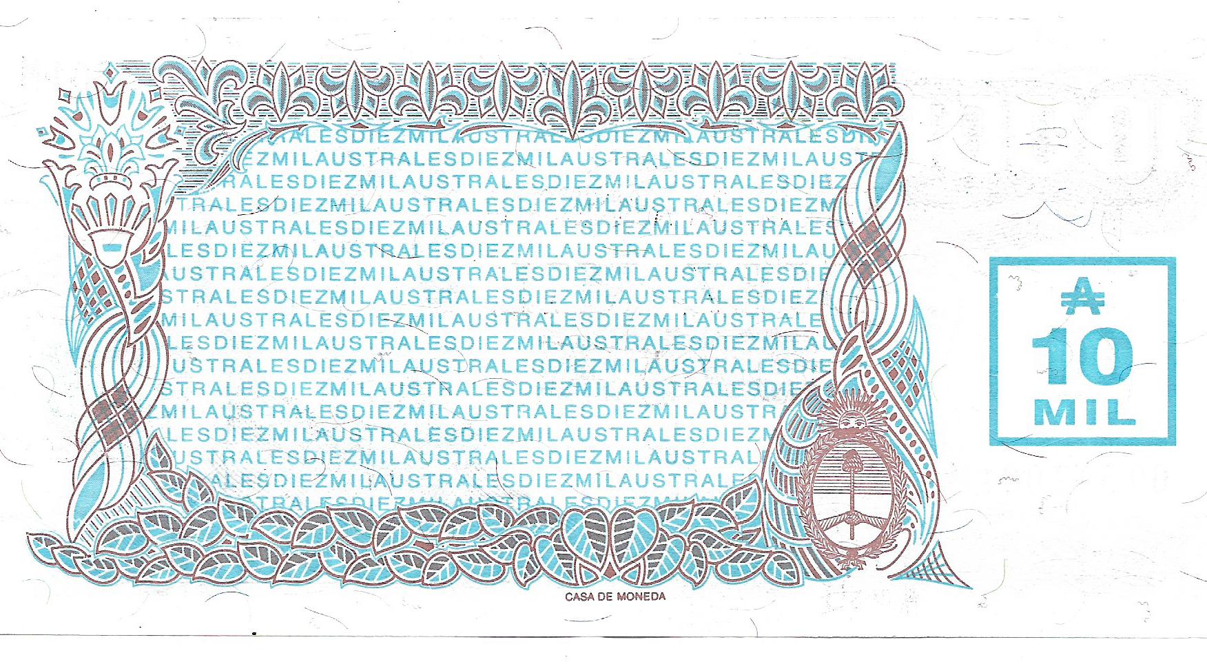 Argentina 10.000 Australes Transitorio De Paul- Fraga Bottero 2876 SC cantidad