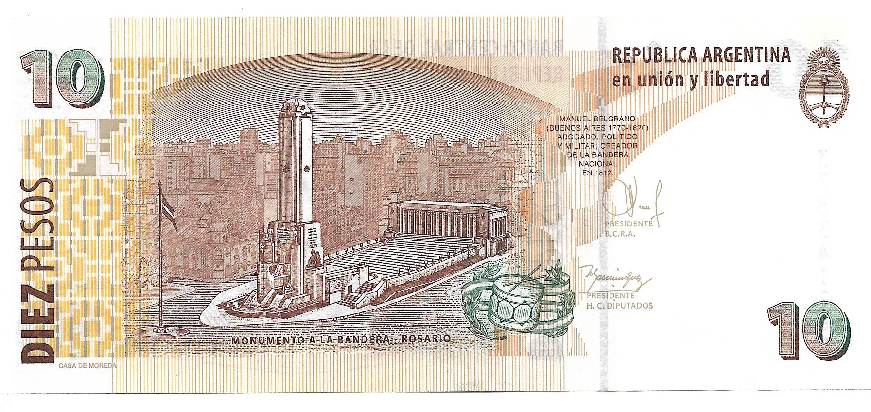 Argentina 10 Pesos Convertibles sin Leyenda serie P Marco del Pont-Dominguez COL781c SC cantidad