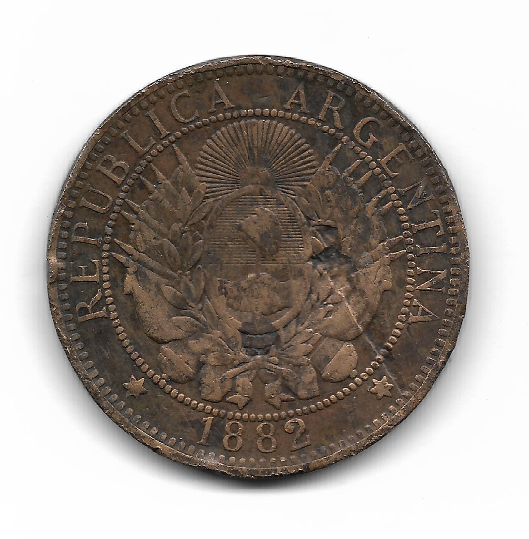 Argentina 2 Centavos 1882 CJ24.2 MB- ( defecto en el laminado del cospel)
