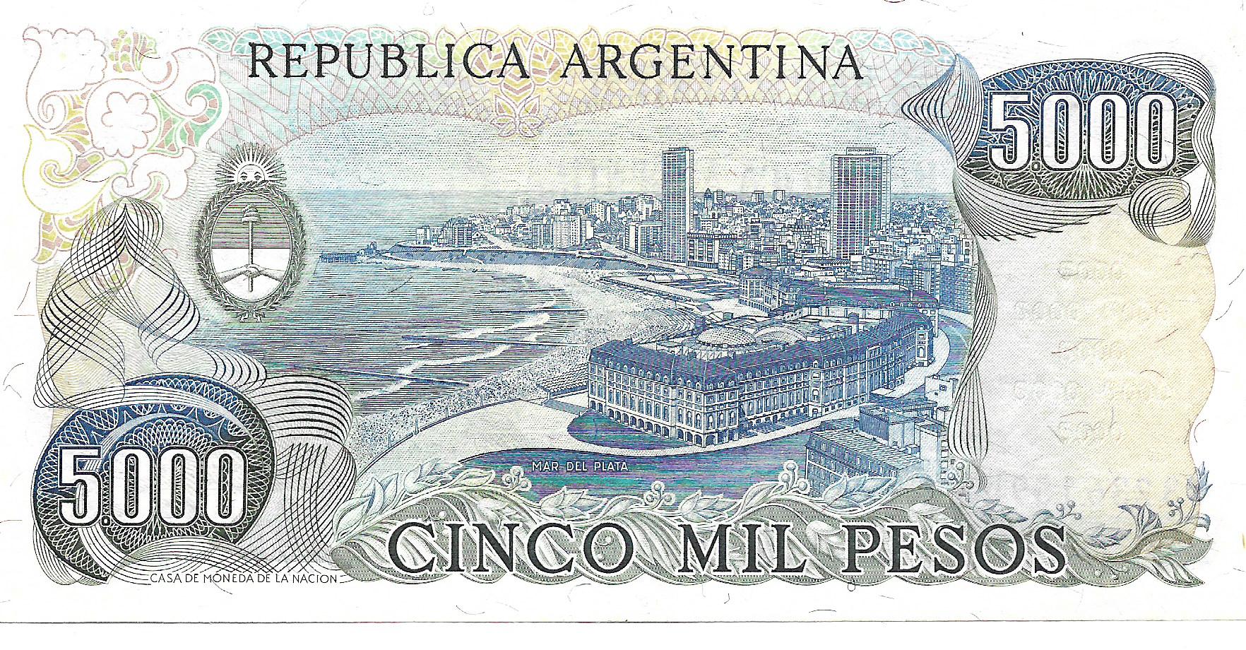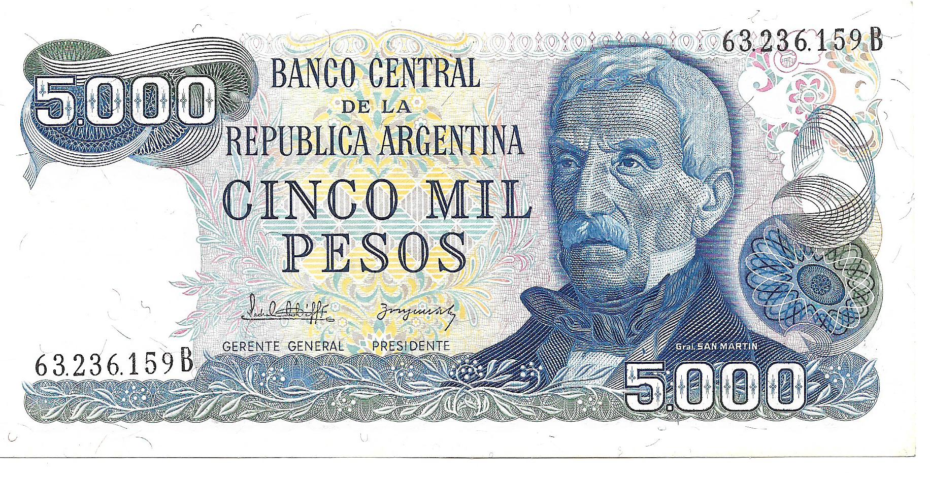 Argentina 5.000 Pesos Ley serie B Lopez-G. del Solar Bottero 2476 SC