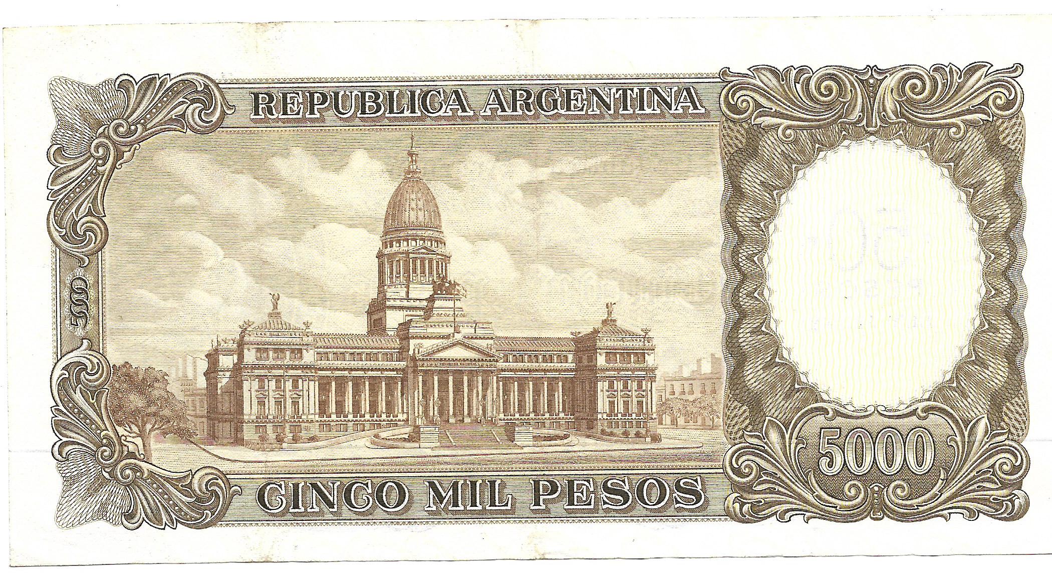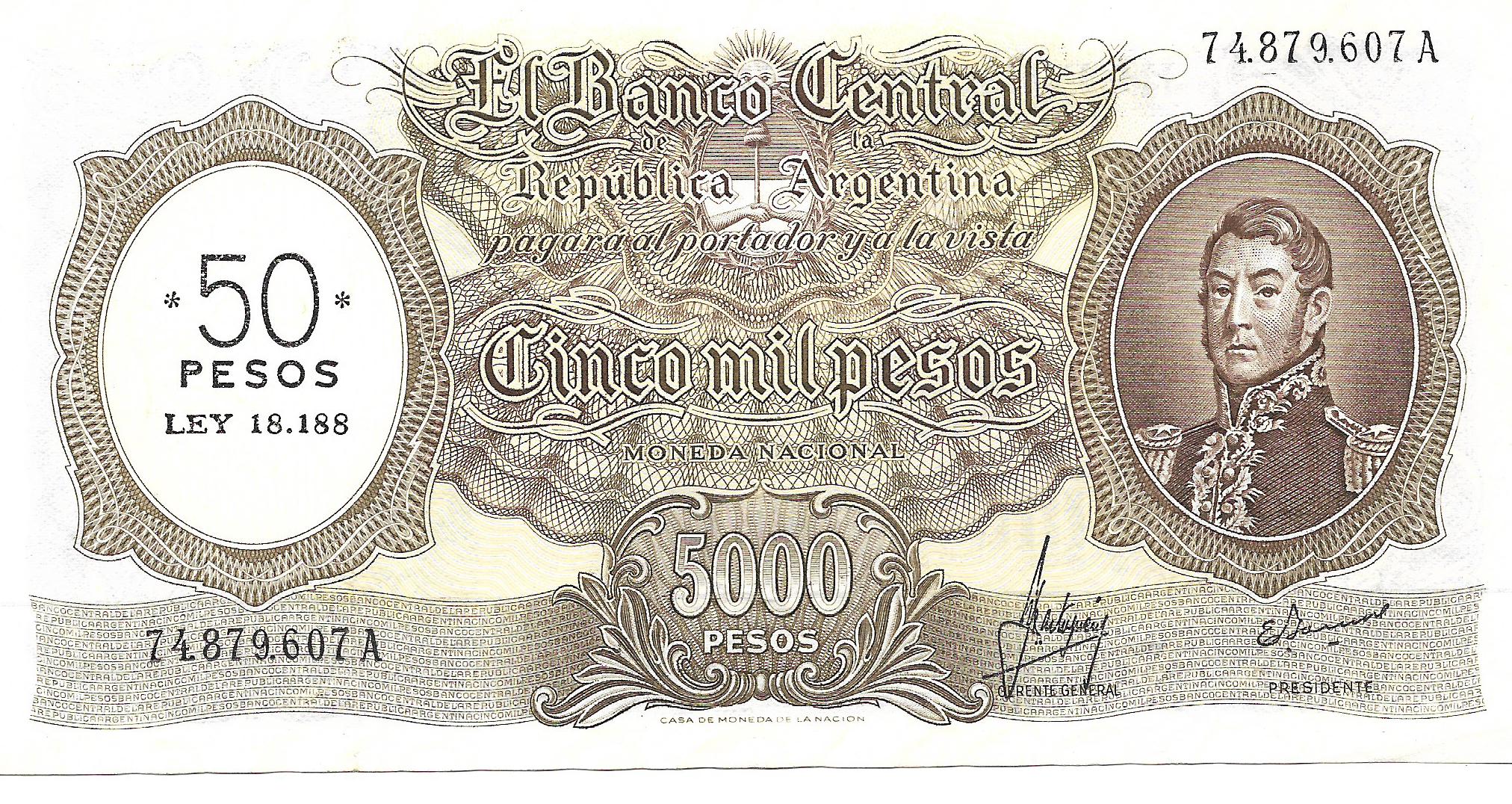 Argentina 5.000 Pesos Moneda Nacional Resellado a 50 Pesos Ley serie A Mastropierro-Ianella Bottero 2217 SC- cantidad