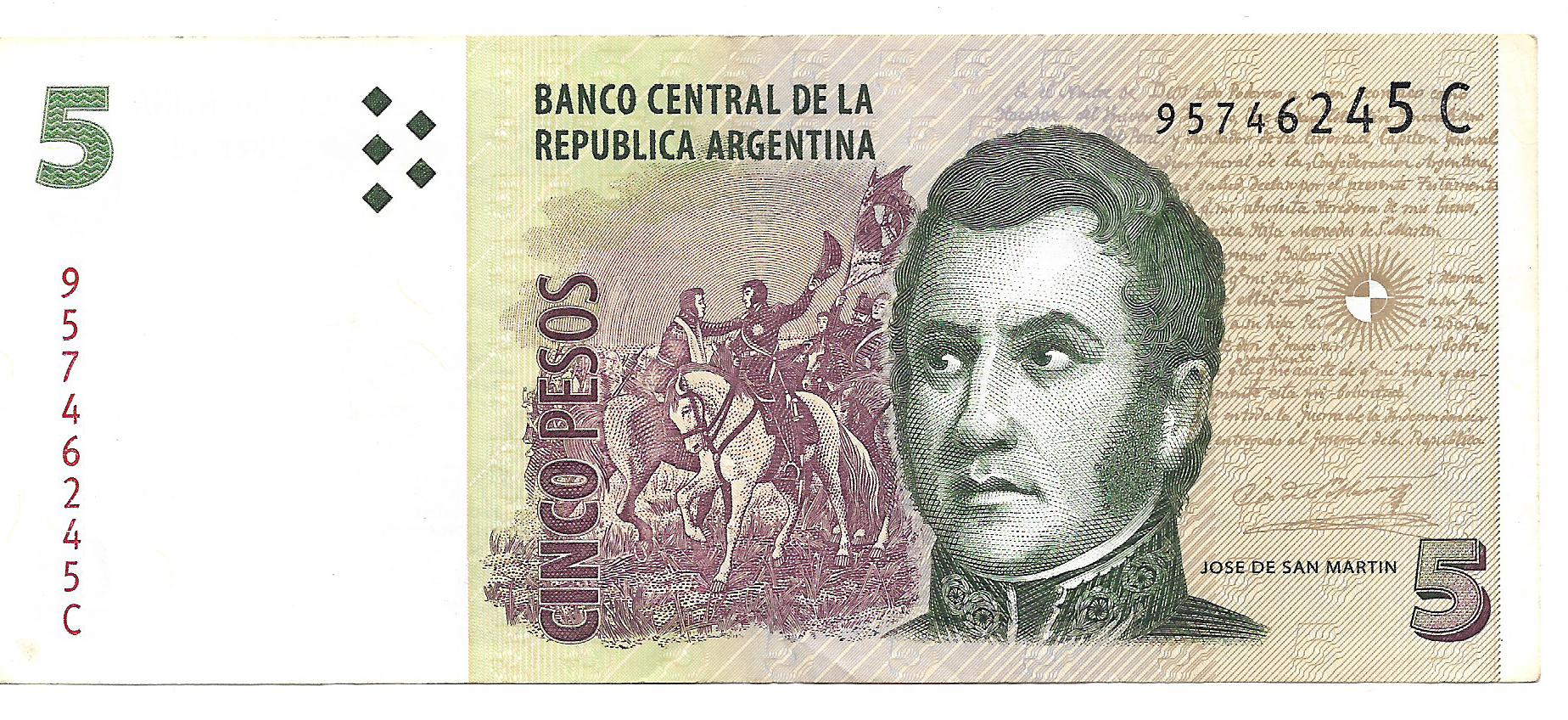 Argentina 5 Pesos Convertibles sin Leyenda serie C Prat Gay-Scioli Bottero 3314 EXC- cantidad