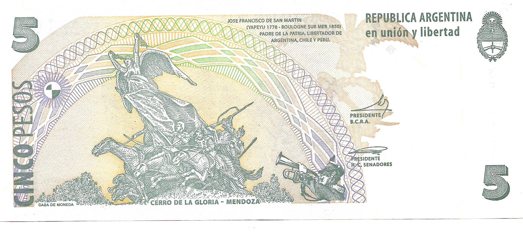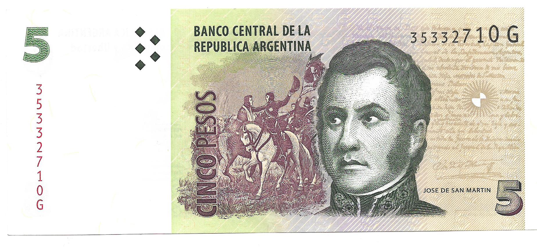 Argentina 5 Pesos Convertibles sin Leyenda serie G Marco del Pont-Cobos Bottero 3328 EXC+