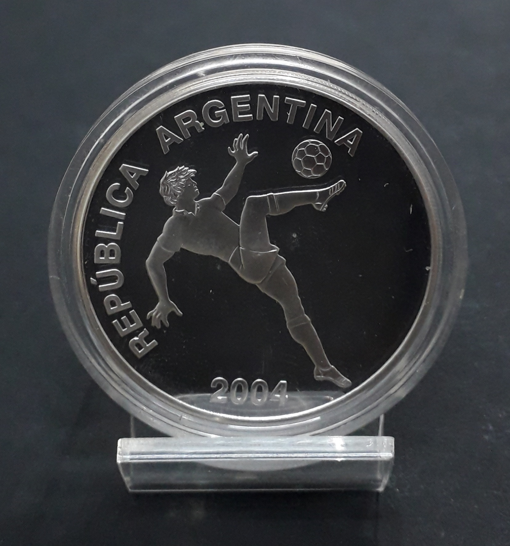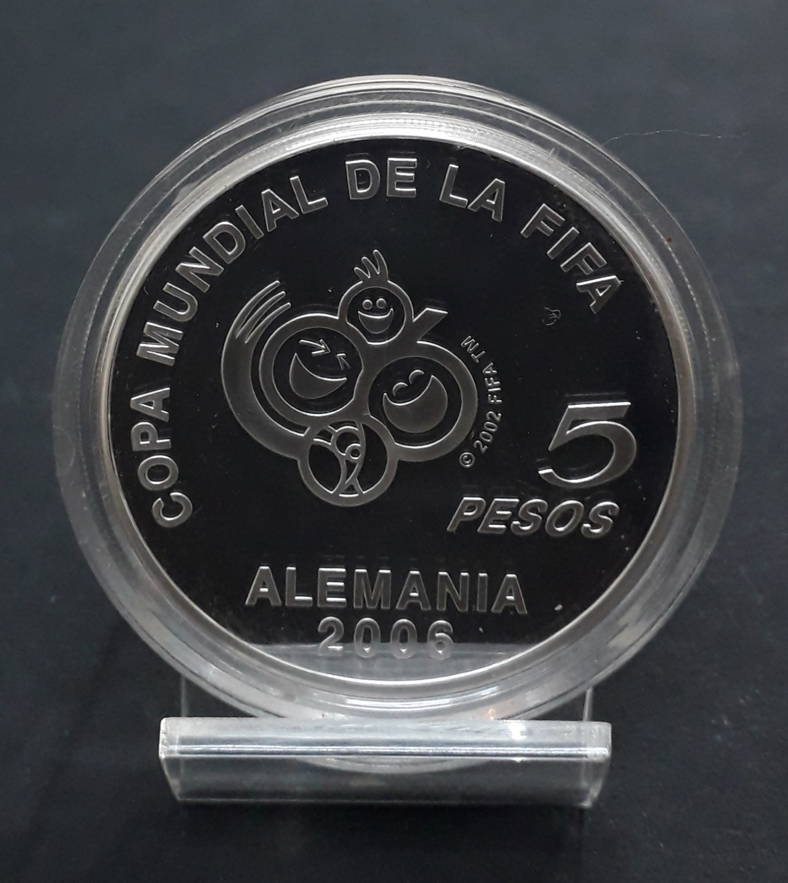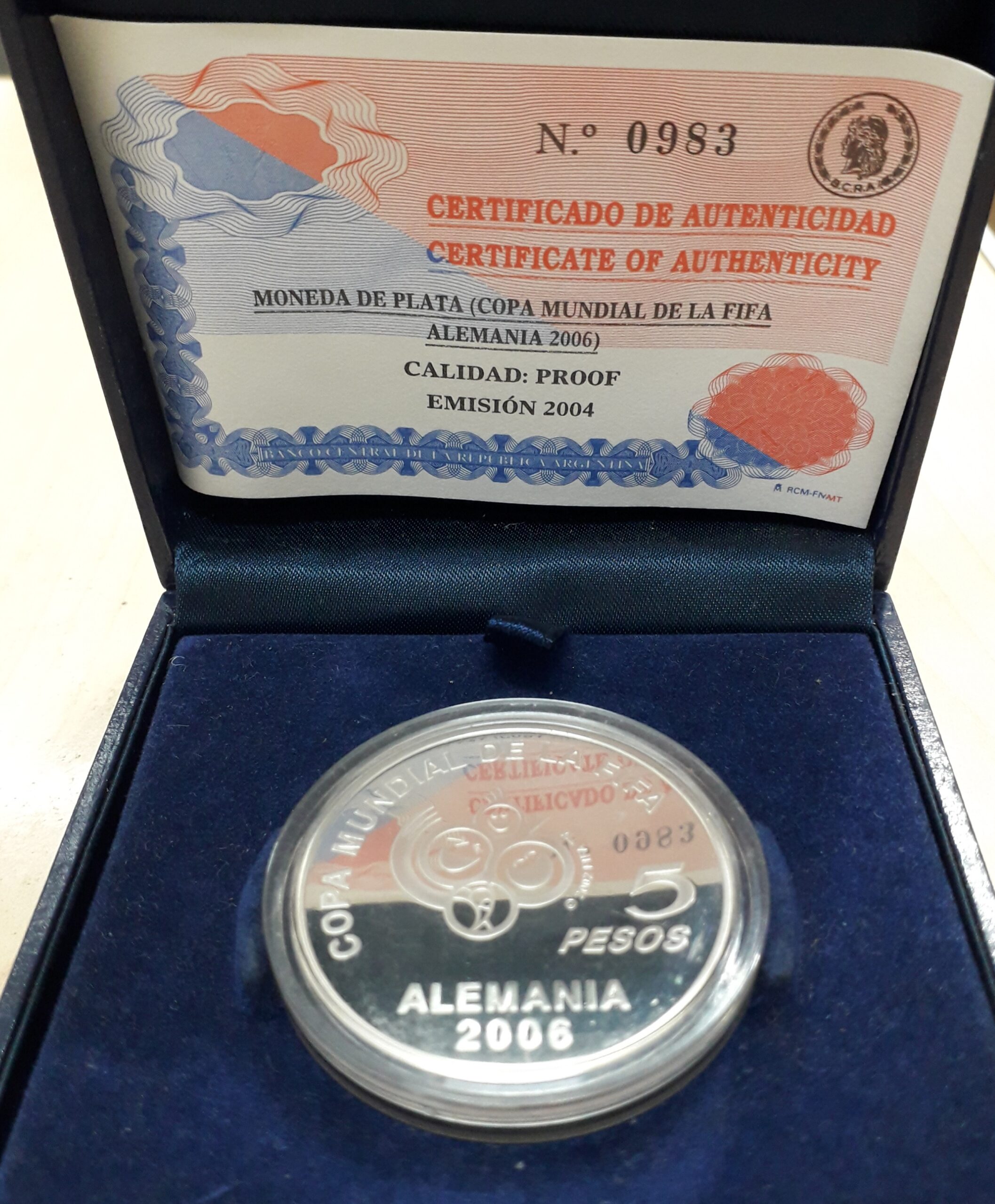 Argentina 5 Pesos Plata 2004 Mundial de Futbol Alemania 2006 CJ8.10 Proof Estuche y Certificado cantidad