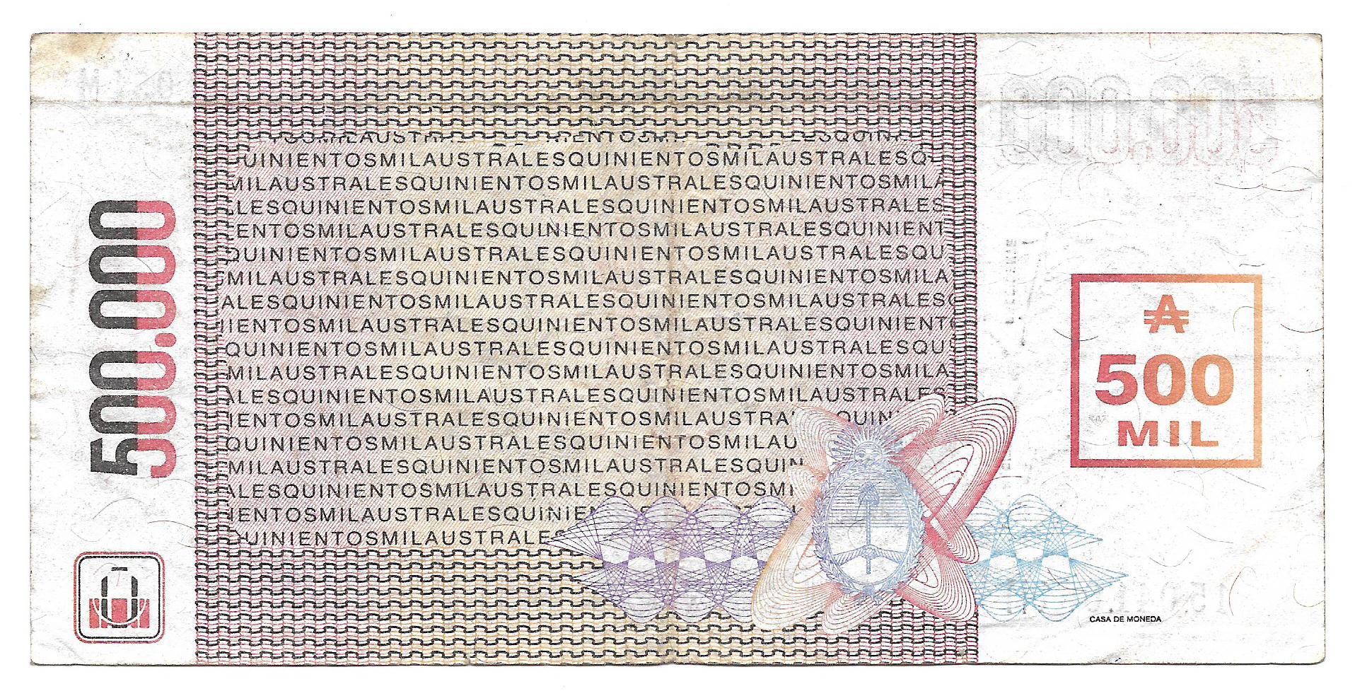 Argentina 500.000 Australes Transitorio Gonzales Fraga-Gonzales Bottero 2897 MB