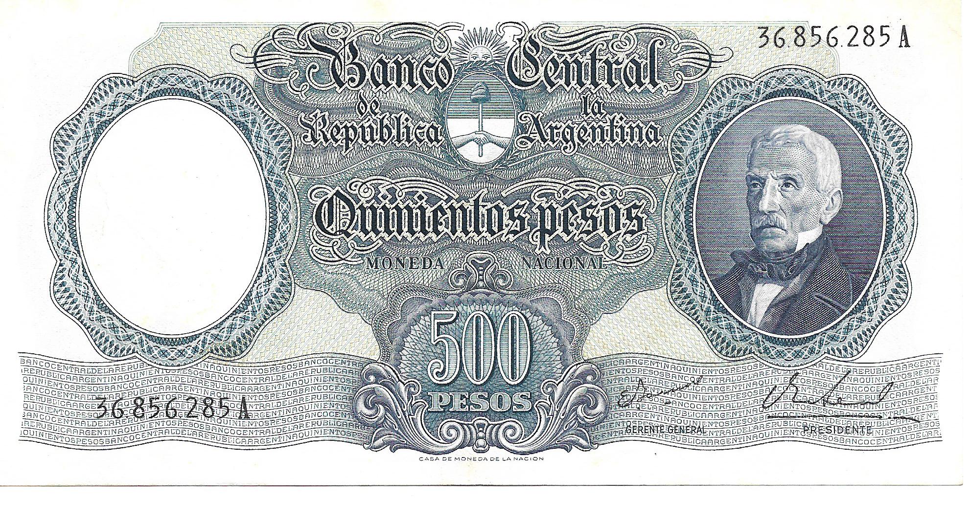 Argentina 500 Pesos Moneda Nacional serie A Ianella-Real Bottero 2122 SC- cantidad