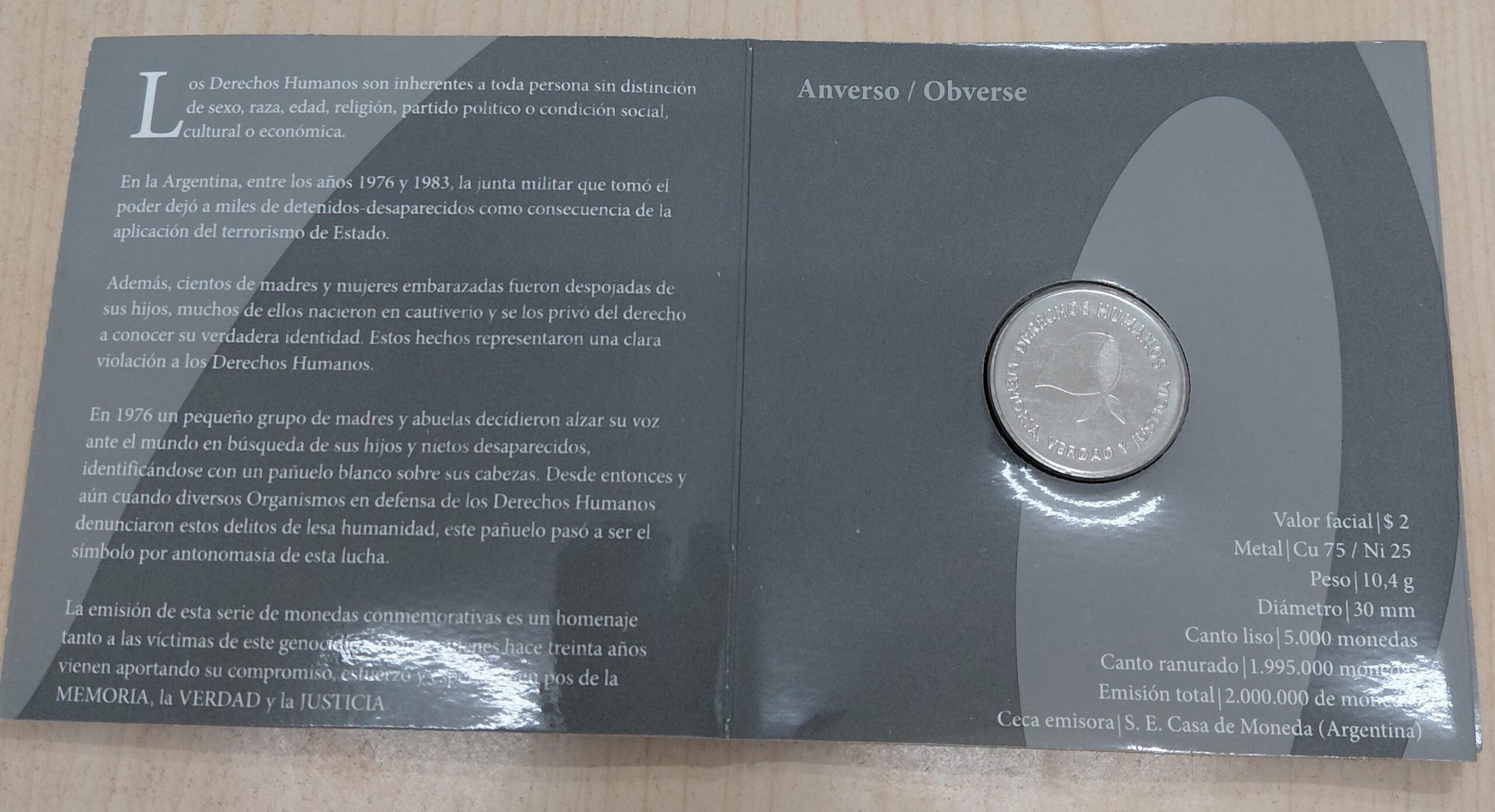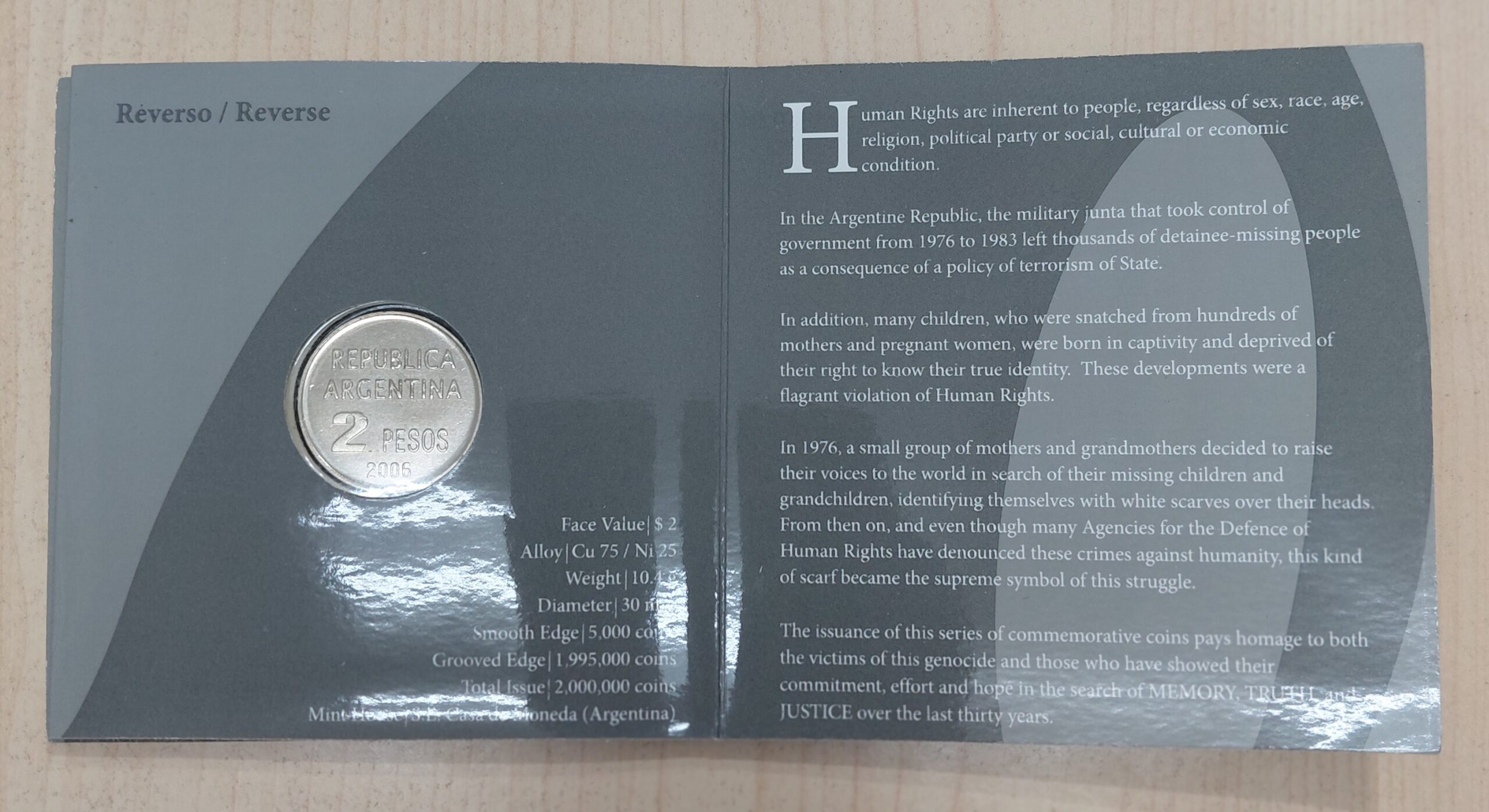 Argentina Blister 2 Pesos 2006 Derechos Humanos BL42 cantidad