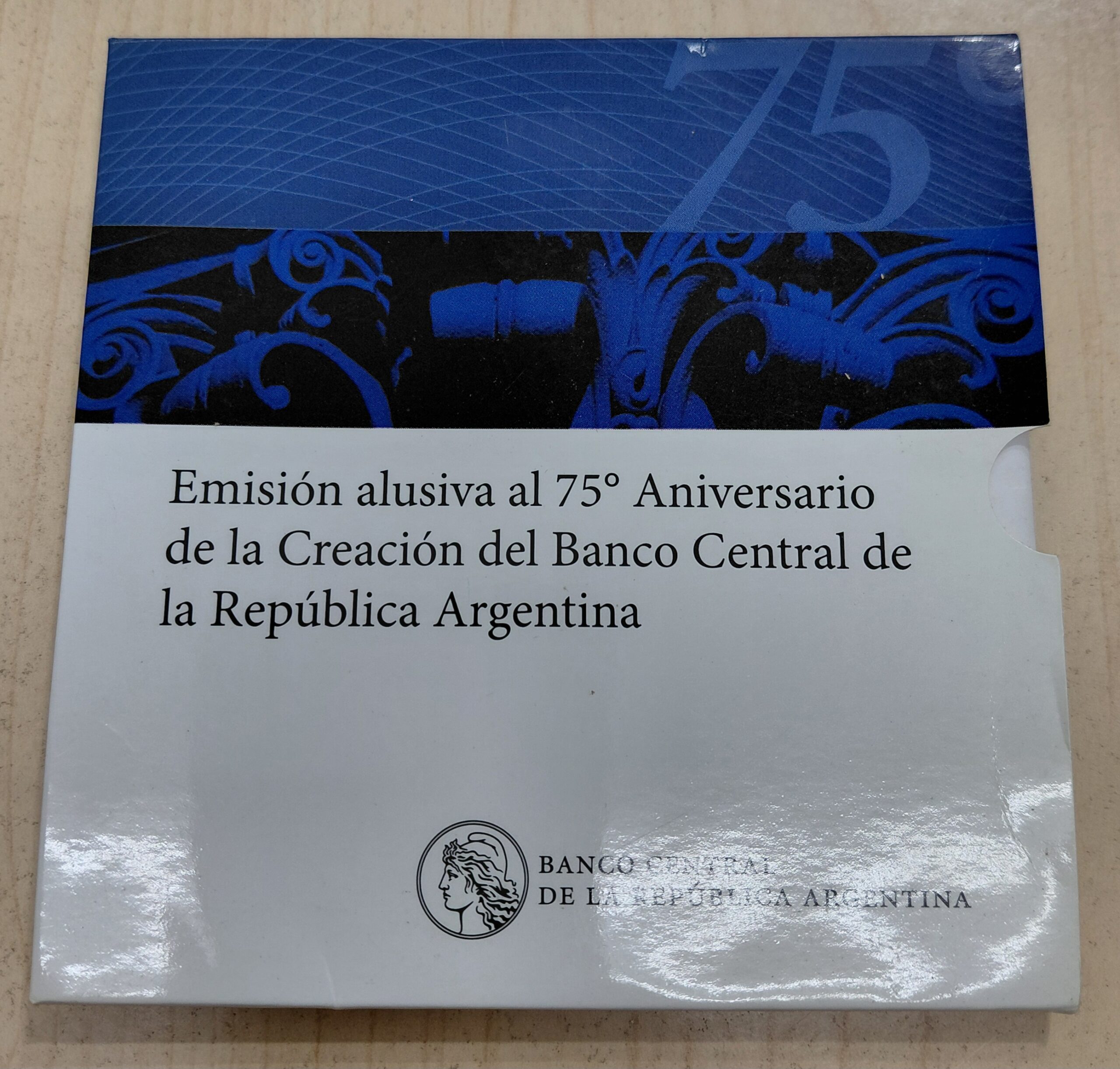 Argentina Blister 2 Pesos 75 Aniversario Banco Central 2010 Canto Liso BL45 cantidad
