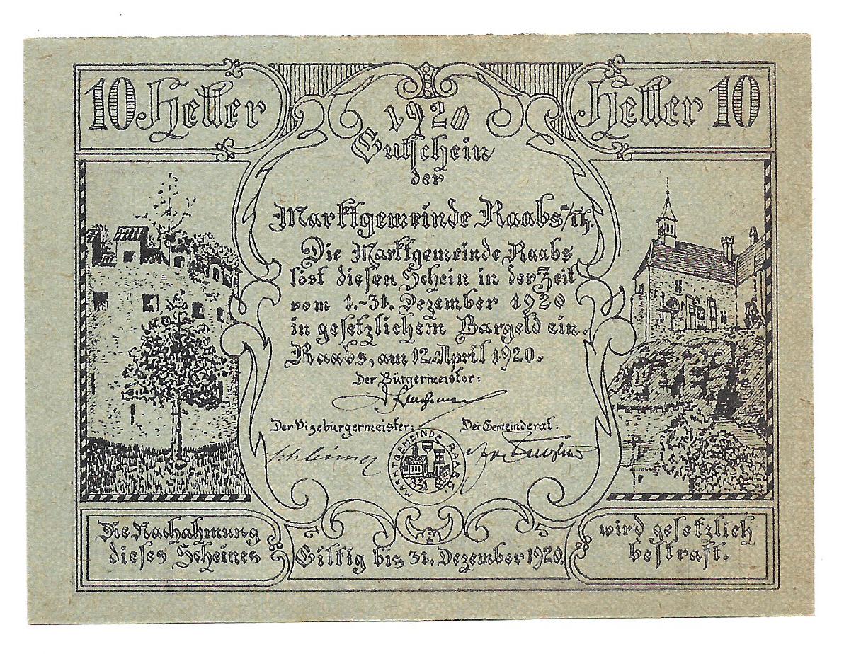 Austria Notgeld Raabs 10 Heller 1920 SC
