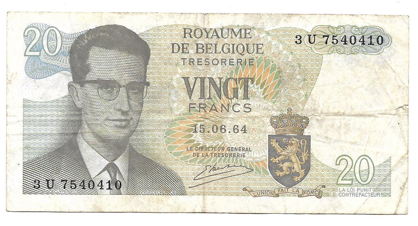 Belgica 20 Francos 1964 P138 MB- cantidad