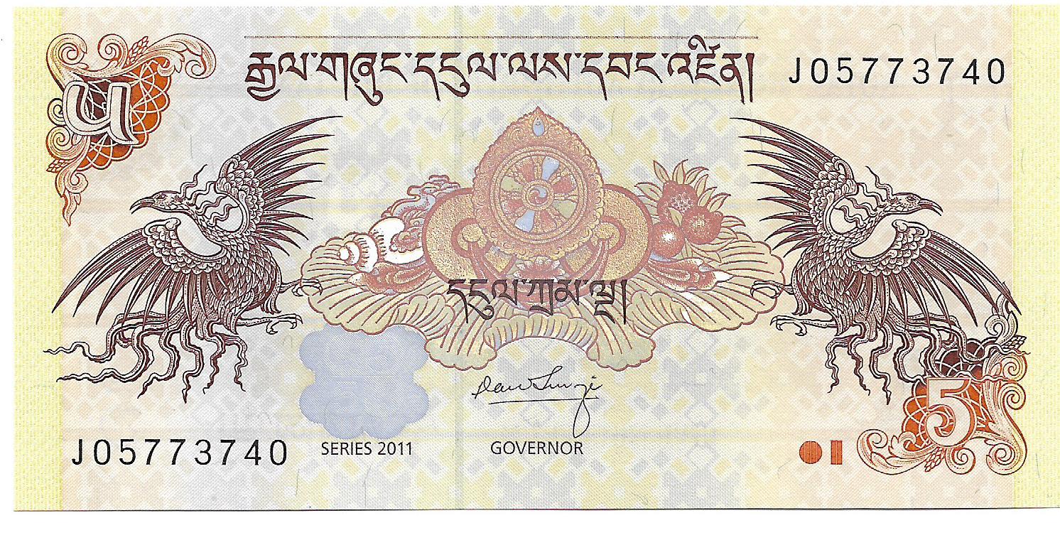 Bhutan 5 Ngultrum 2011 P28b SC cantidad