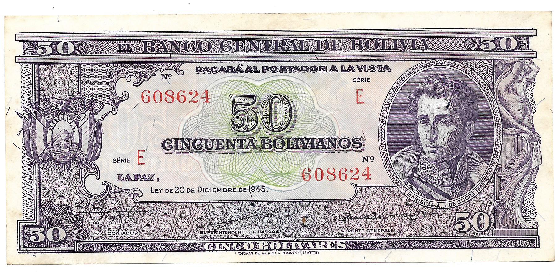 • Bolivia 50 Bolivianos 1945 P141 SC