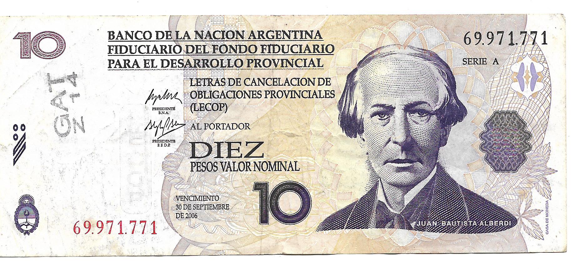 Bono Provincia de San Juan 10 Pesos 1995 EC427 SC-