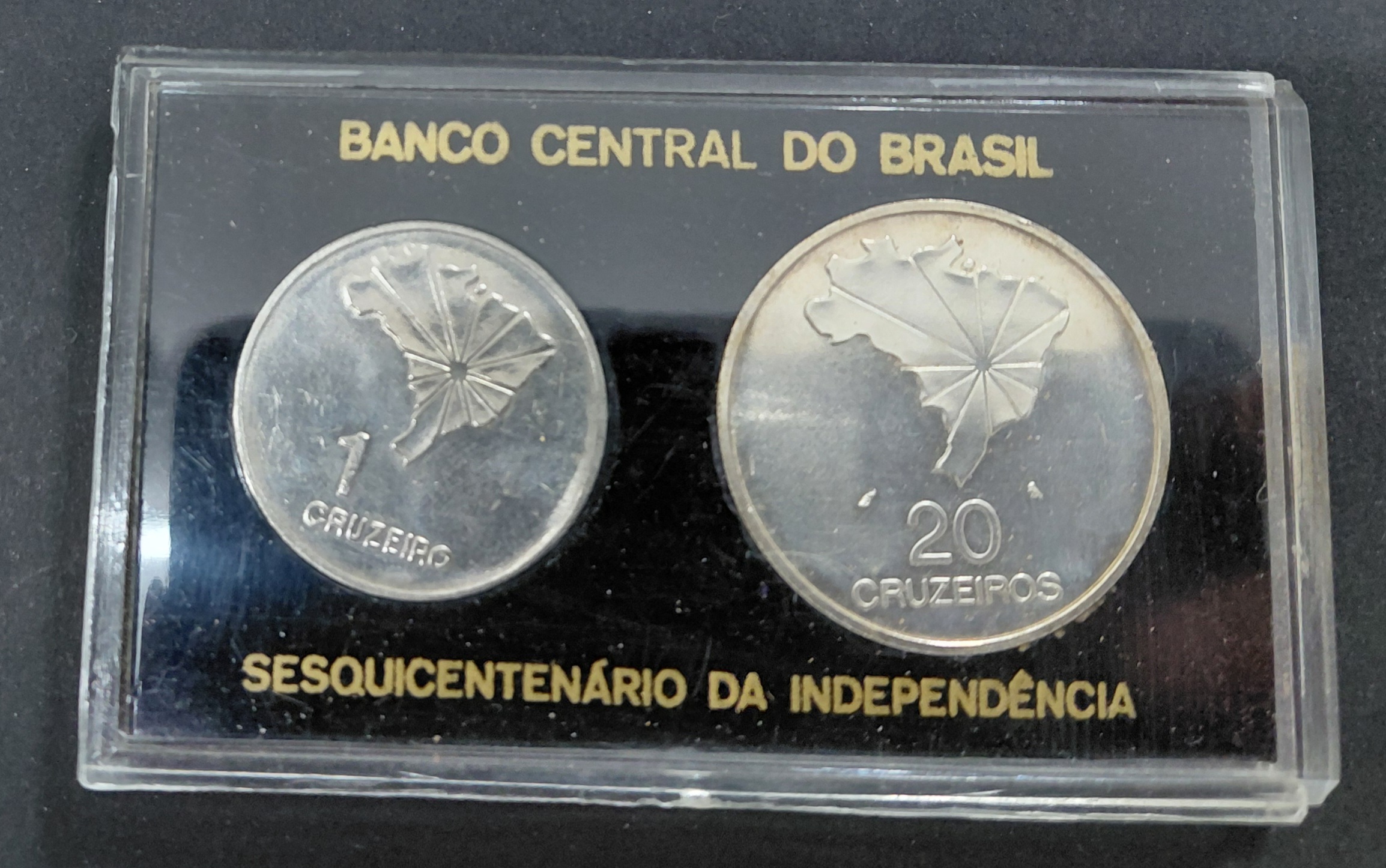 Brasil set 1 y 20 Cruzeiros Niquel y Plata 1972 Conmemorativas 150 años de la Independencia SC cantidad