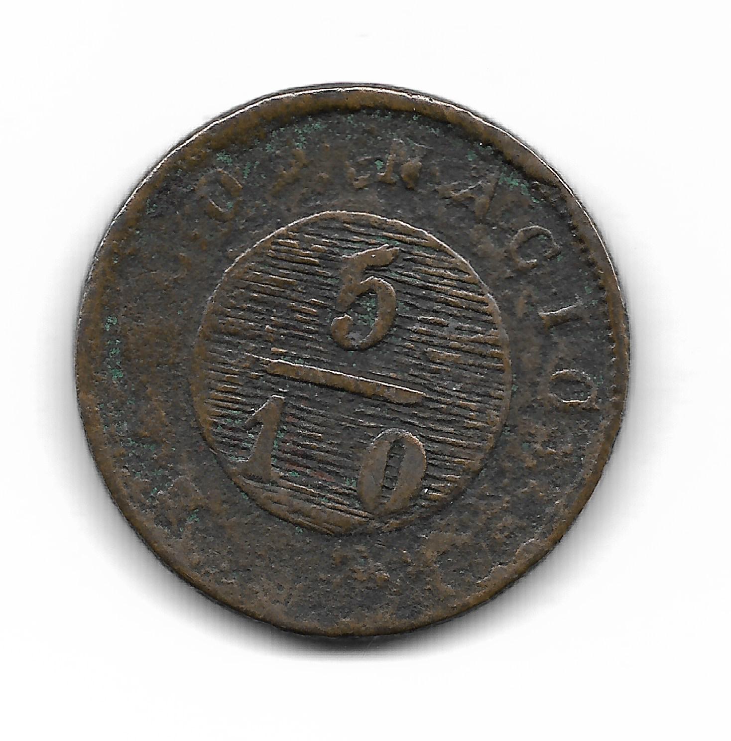 Buenos Aires 5 Decimos 1827 CJ 9.1.11. A8 – R15 B+