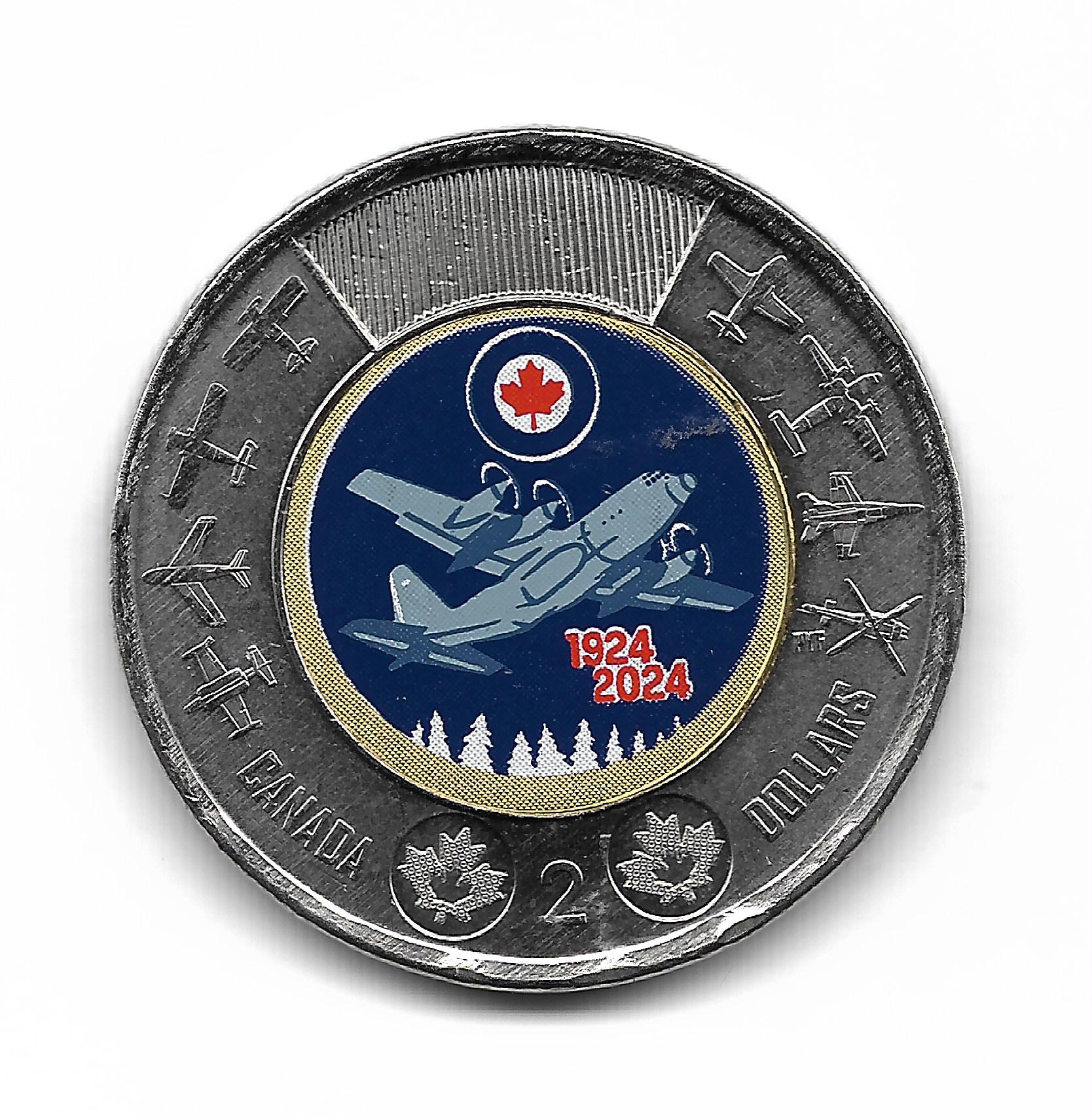 Canada 2 Dolares 1924-2024 Esmaltado Conmemorativo 100 Aniversario Fuerza Aerea Canadiense SC