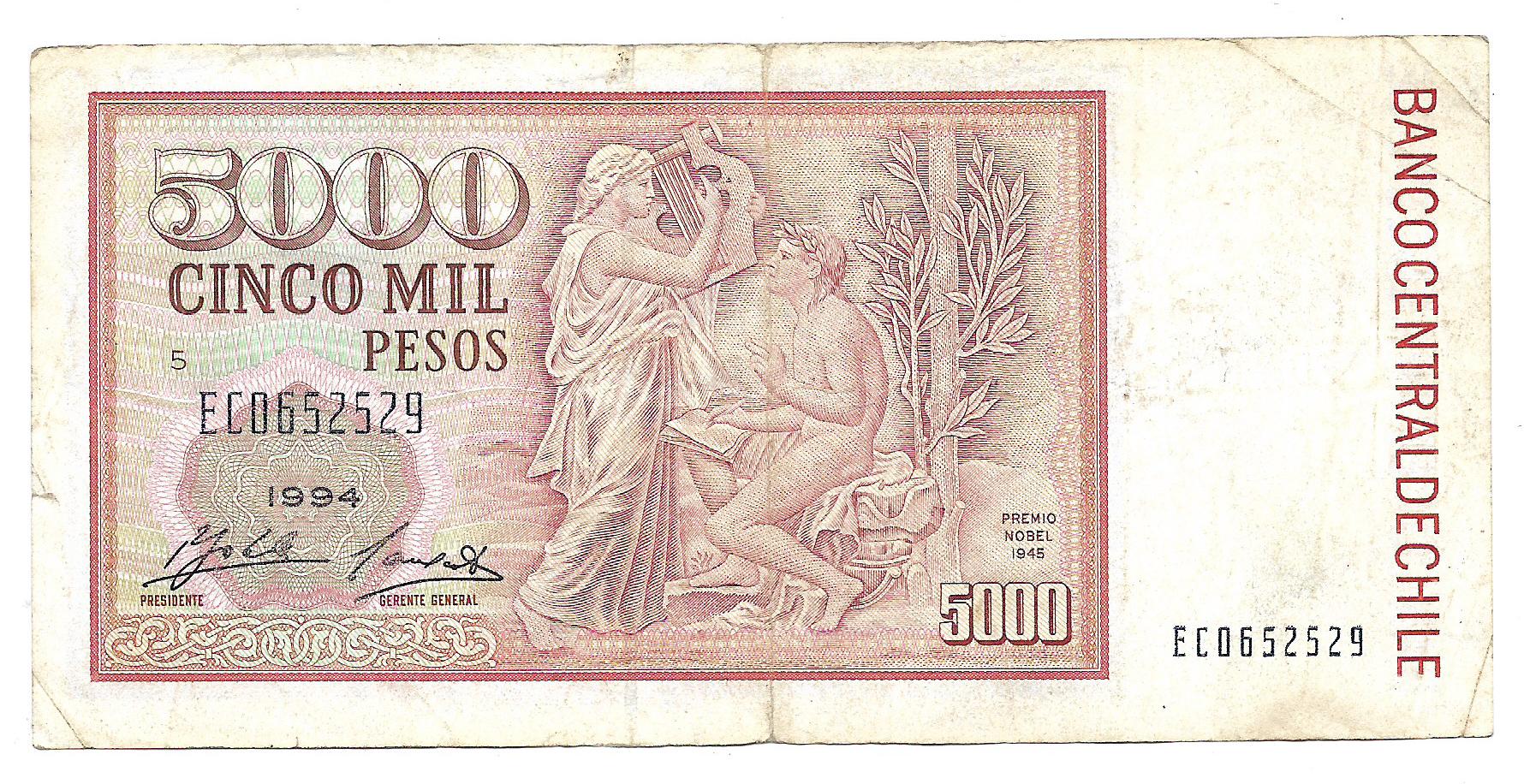 Chile 5.000 Pesos 1994 Gabriela Mistral P155d MB-