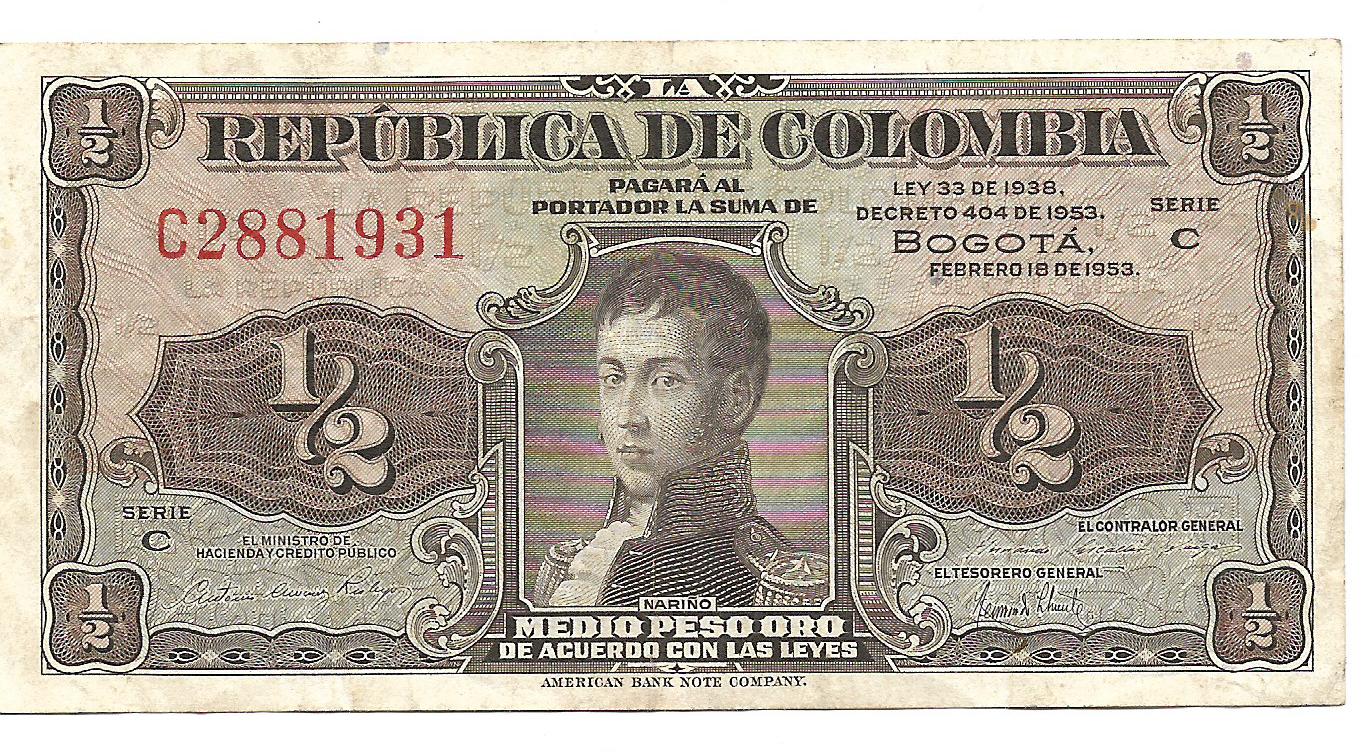 Colombia 1/2 Peso Oro 1953 P345b MB cantidad