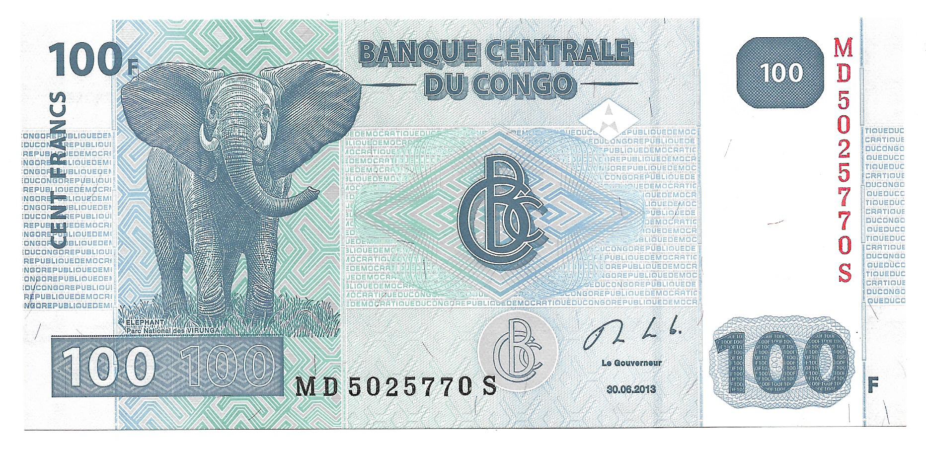 Congo 100 Francos 2013 Elefante P98 SC cantidad