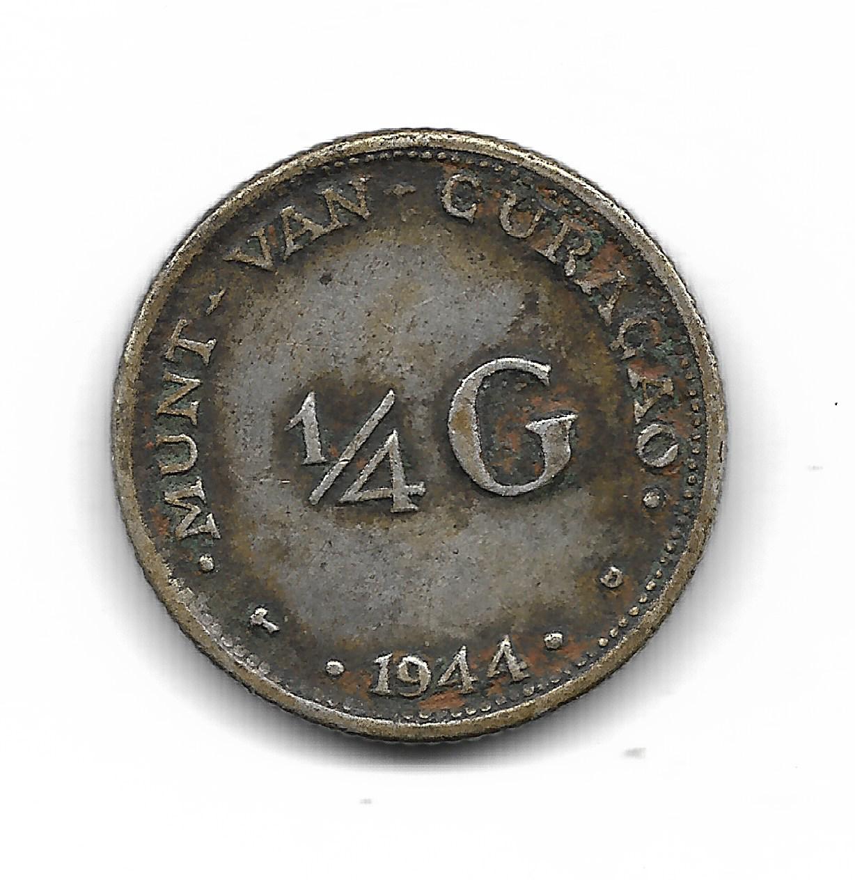 • Curazao 1/4 Gulden de Plata 1944 KM44 MB
