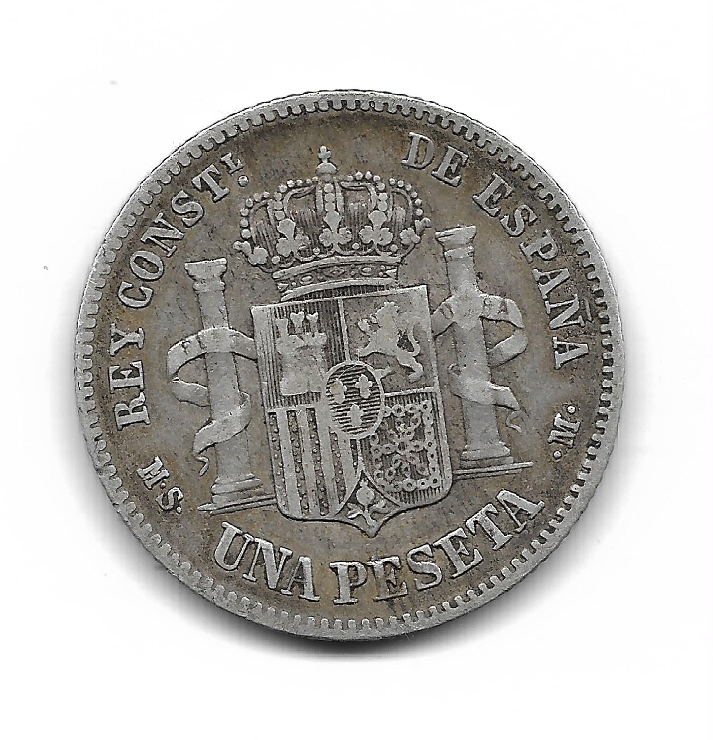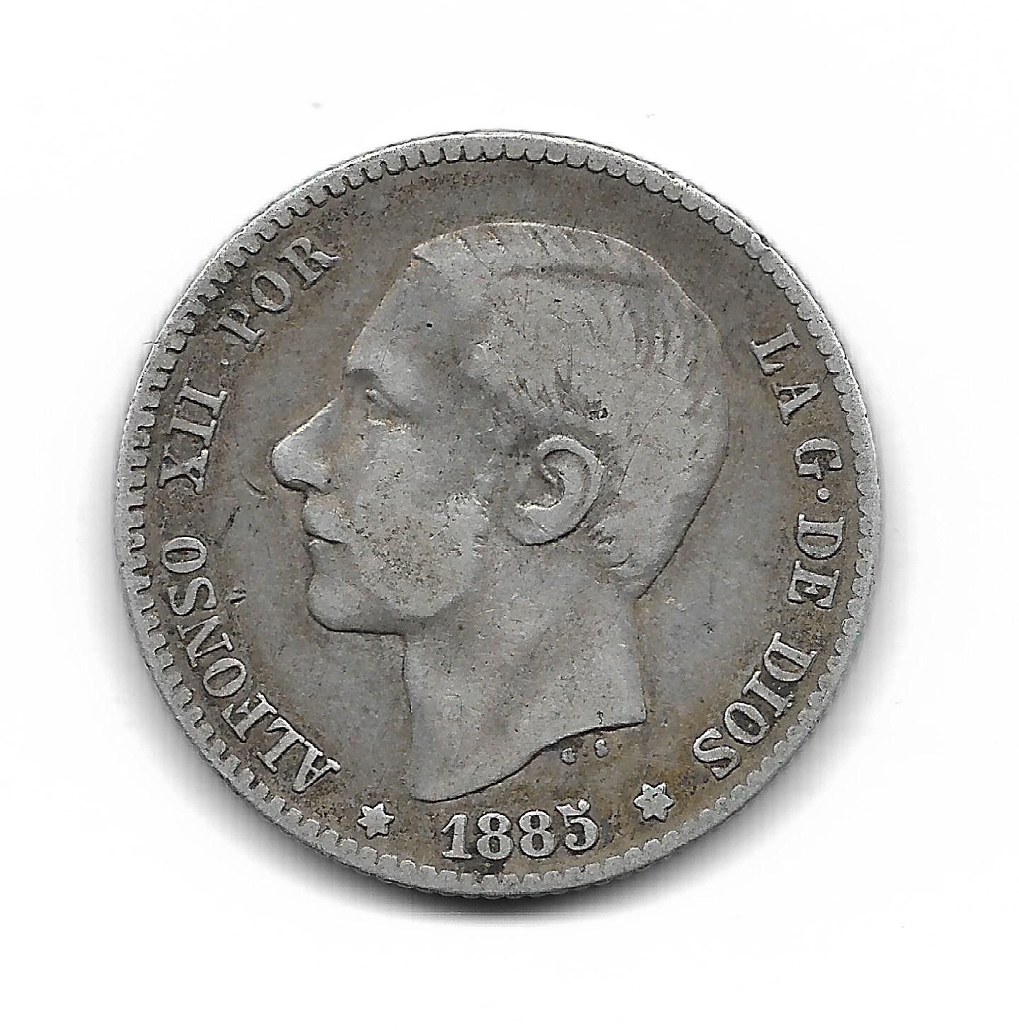 España 1 Peseta de Plata 1885 *85 MS-M KM686 MB