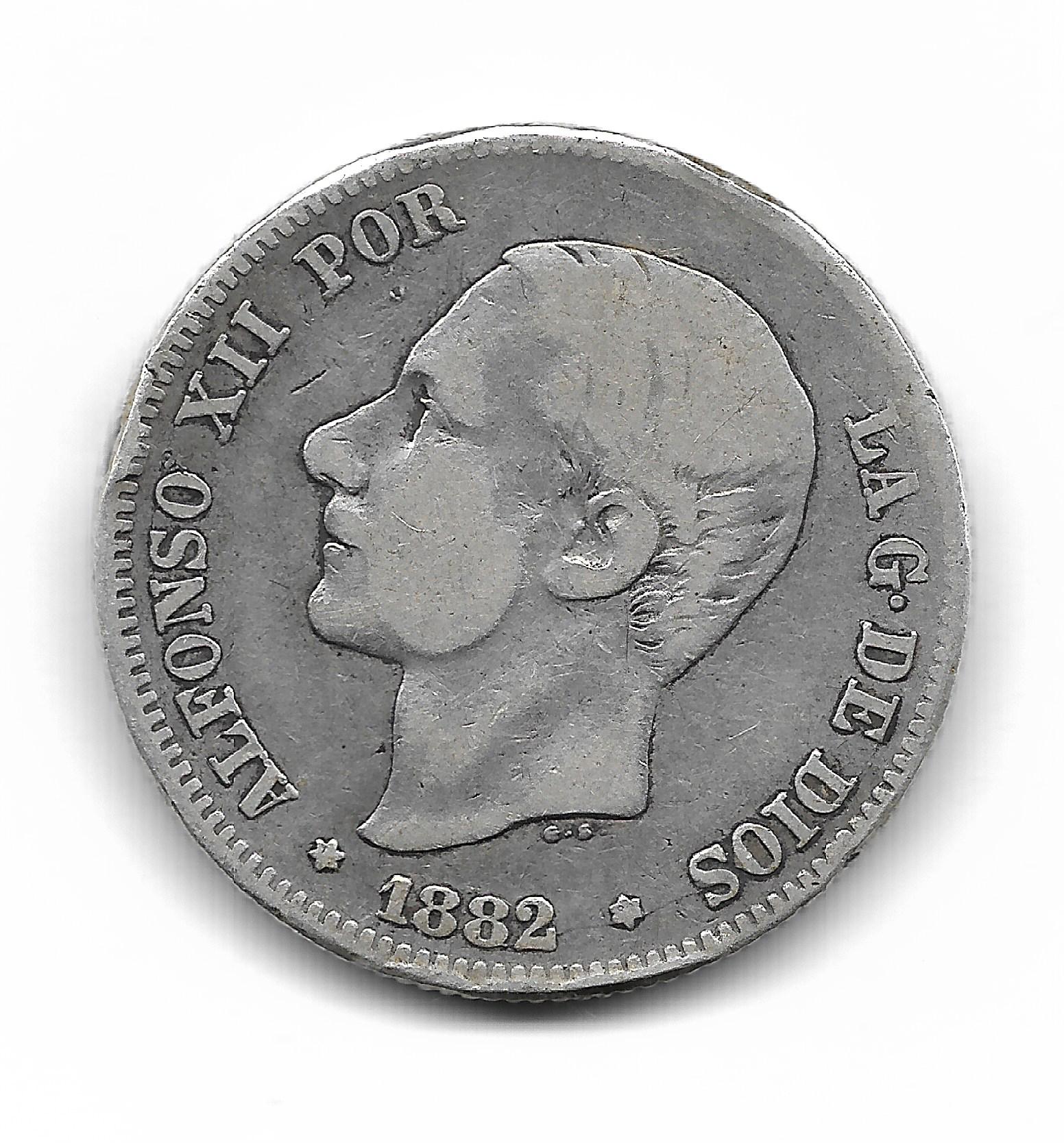 España 2 Pesetas de Plata 1882 *82 MS-M KM678 MB-