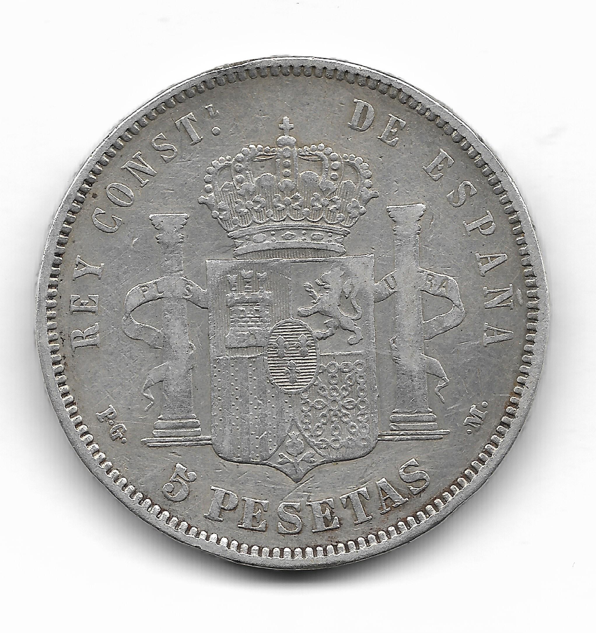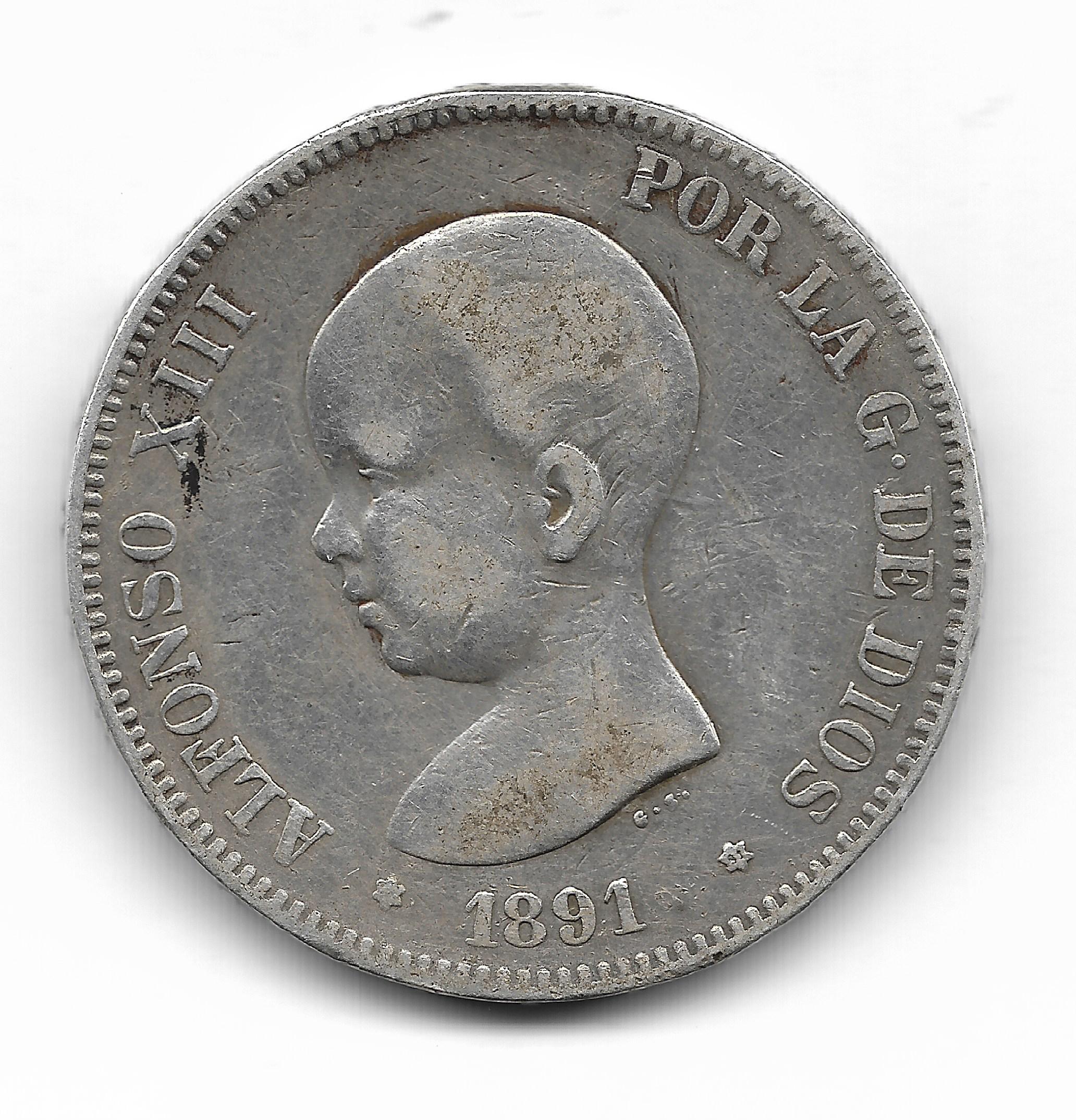 España 5 Pesetas 1891 *91 PG-M KM689 MB+ cantidad