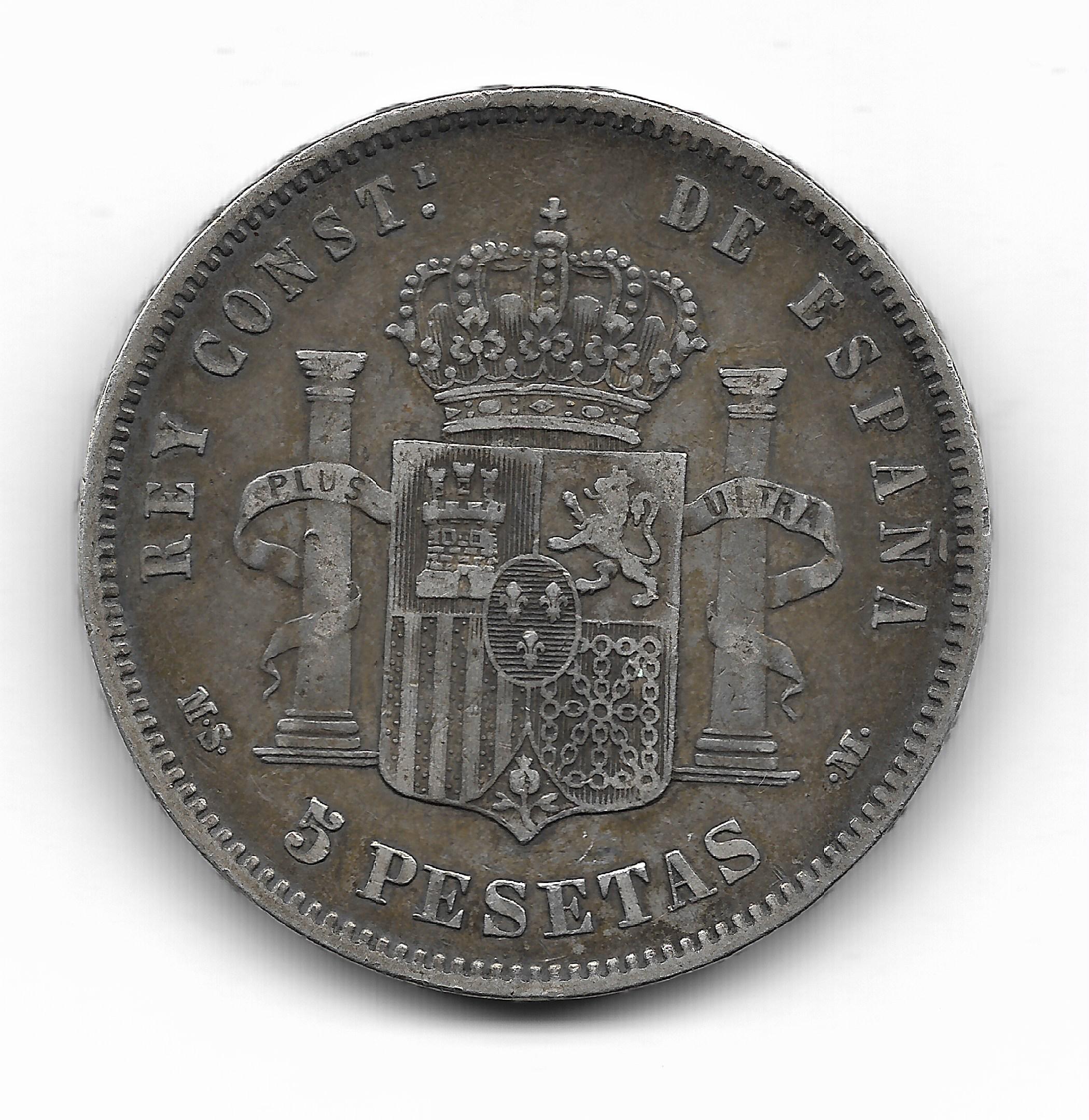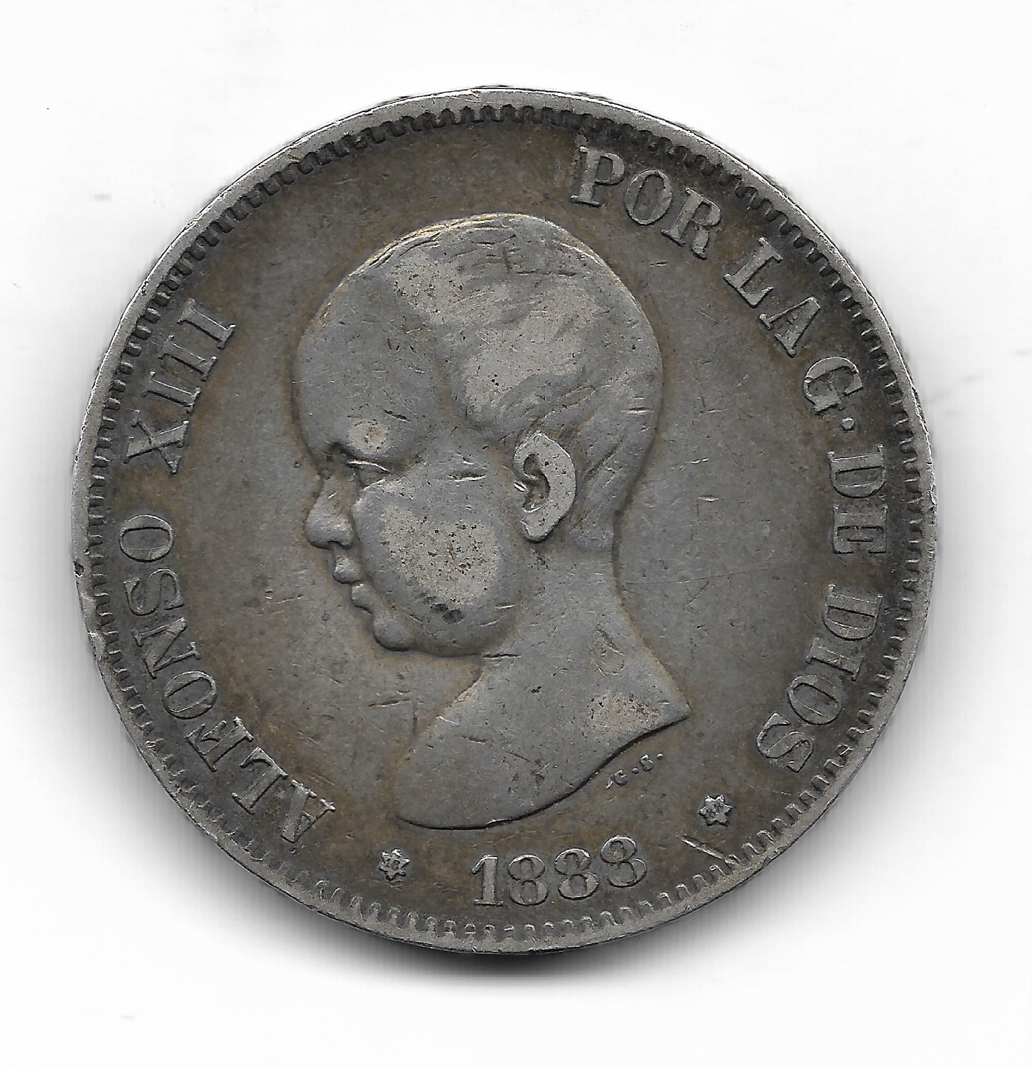 • España 5 Pesetas de Plata 1888 *88 MS-M Rara KM689 MB+