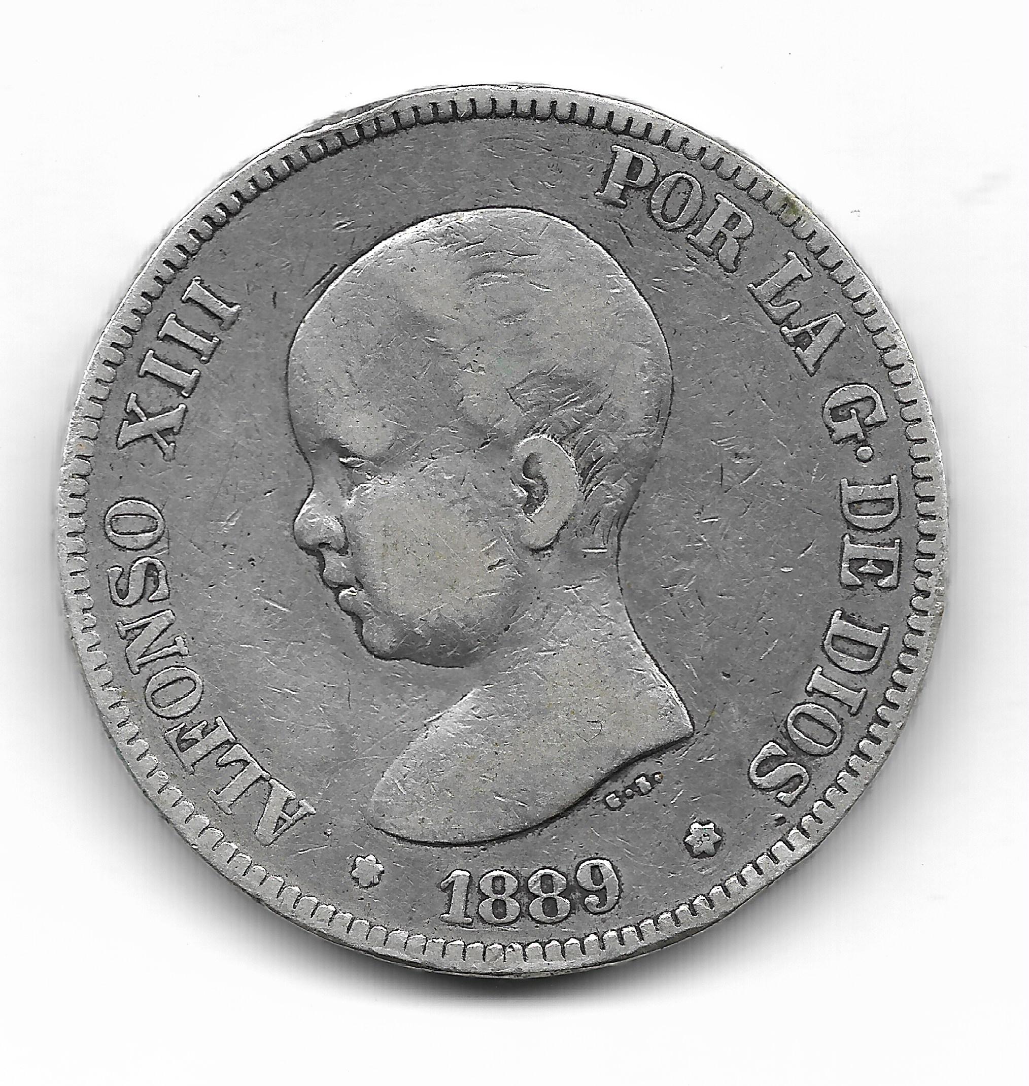 España 5 Pesetas de Plata 1889 *89 MP-M KM689 MB cantidad