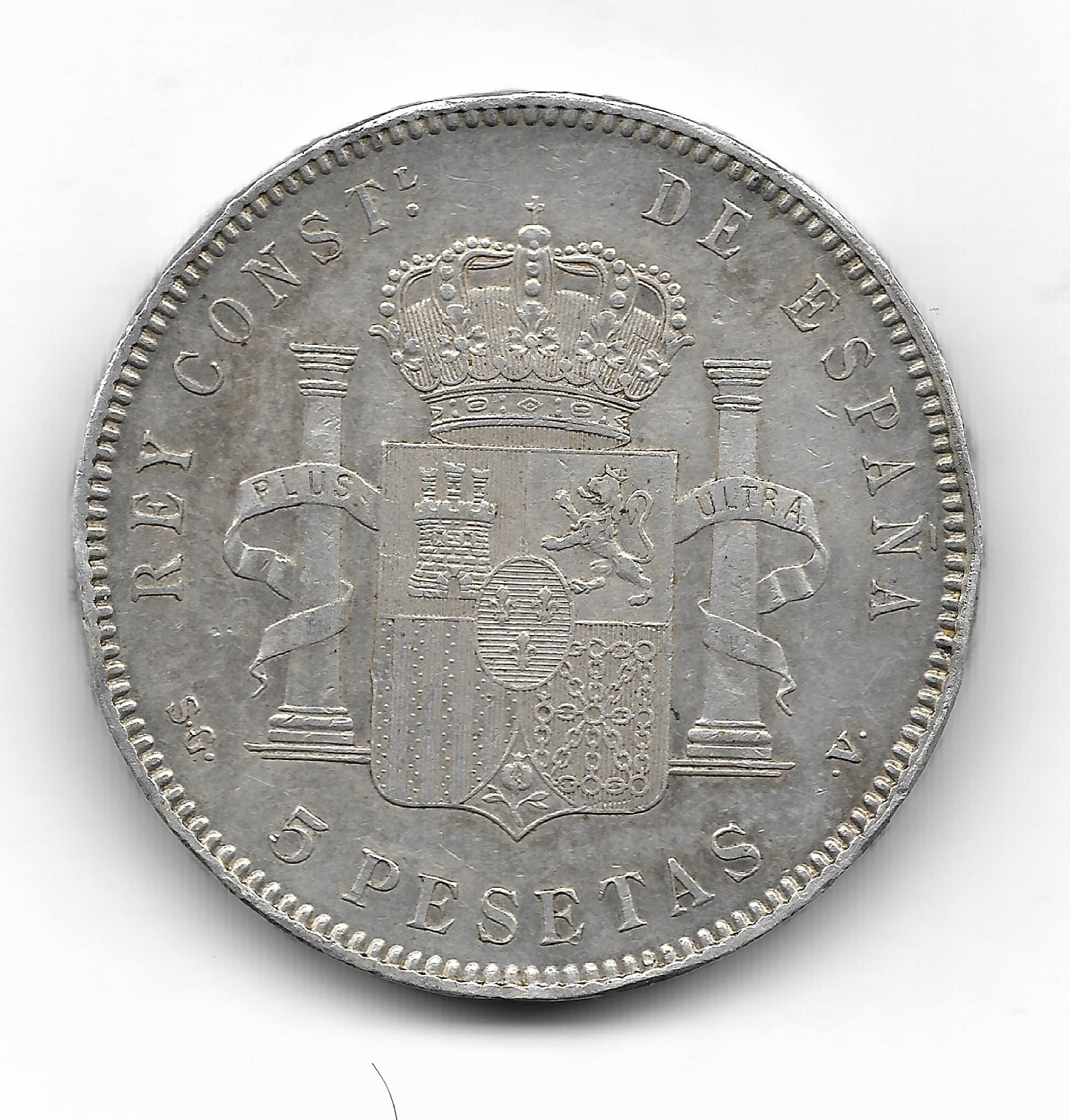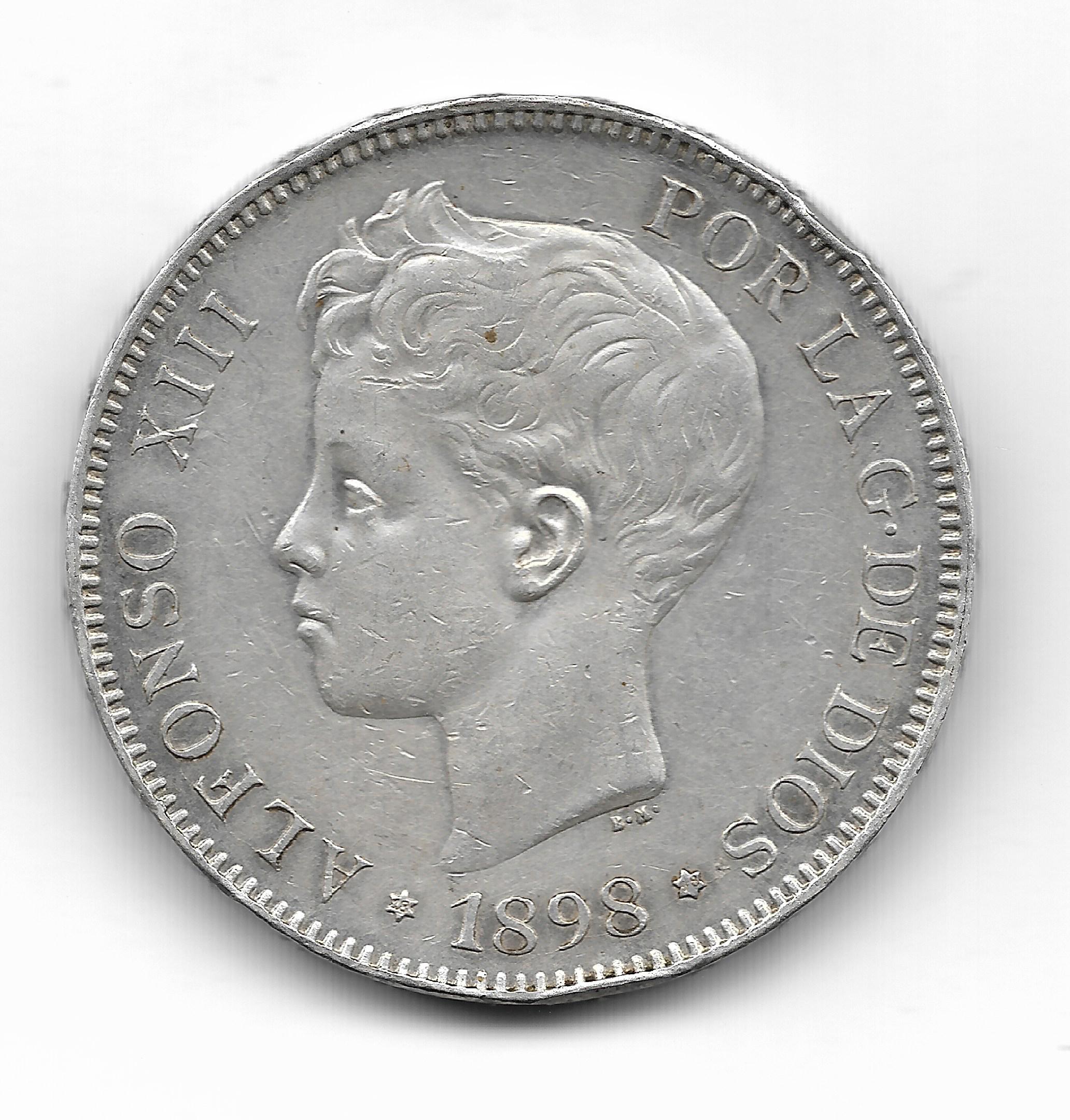 España 5 Pesetas de Plata 1898 *98 SG-V KM707 EXC cantidad