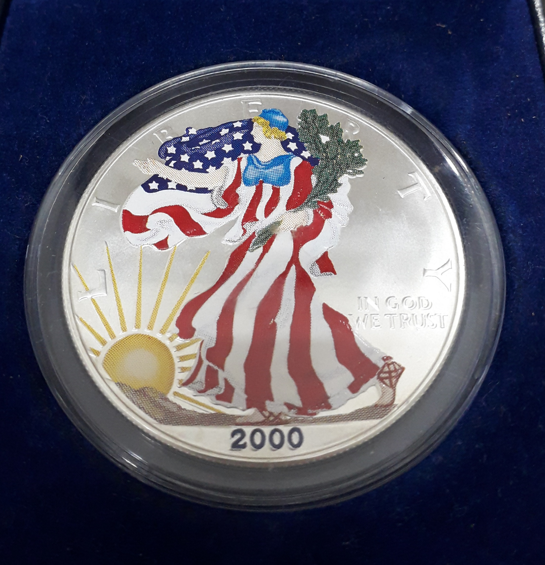 Estados Unidos 1 Dolar 2000 Onza Plata .999 Esmaltada Colorizada con Estuche SC cantidad