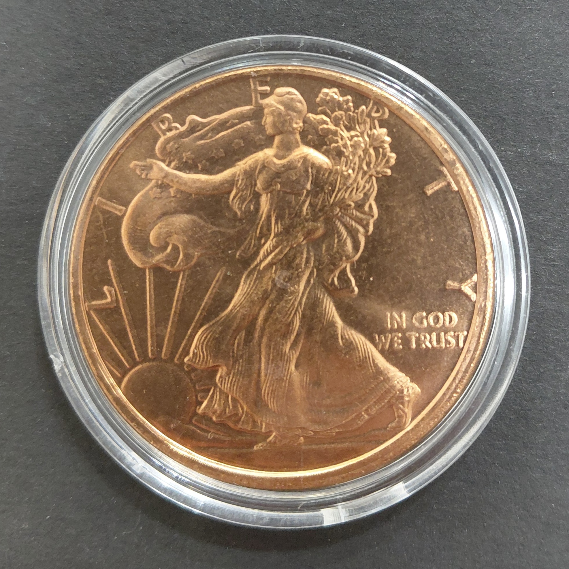 Estados Unidos Onza de Cobre .999 Walking Liberty en Capsula SC
