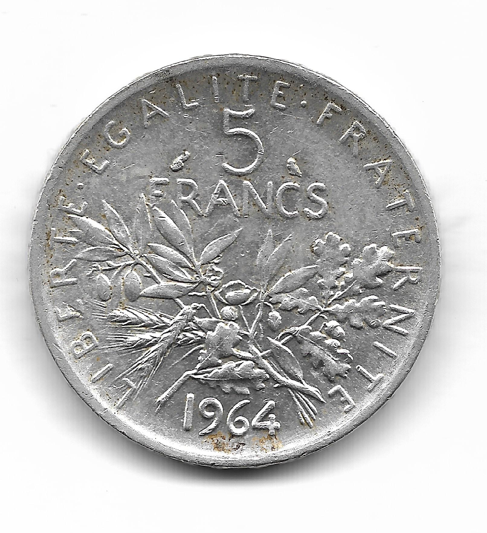 Francia 5 Francos de Plata 1964 KM926 EXC