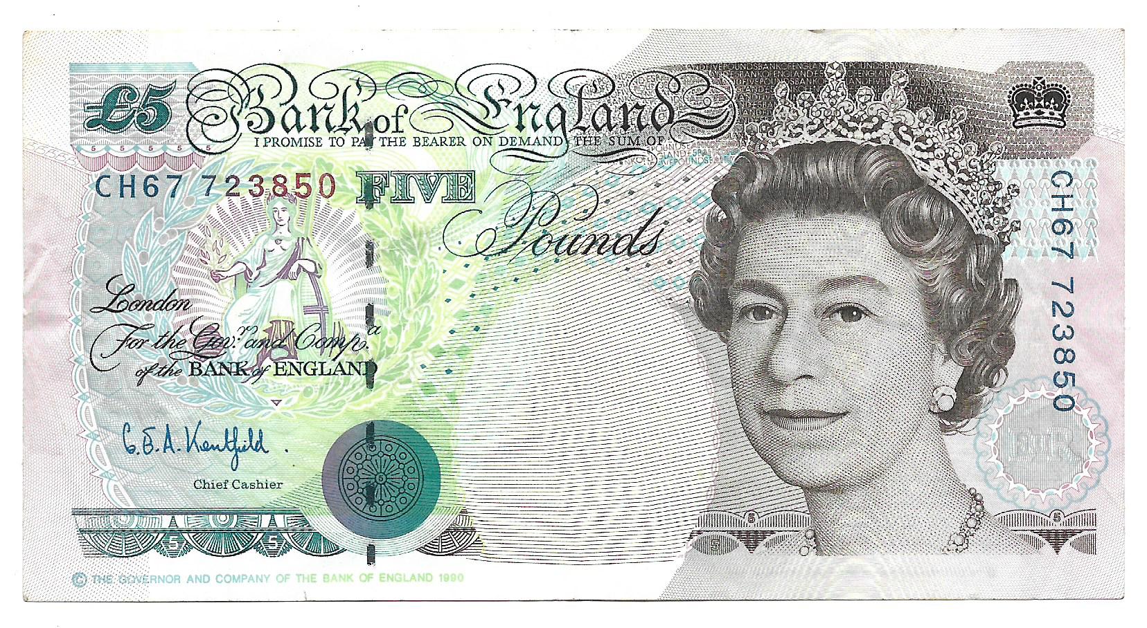 Gran Bretaña 5 Libras 1991-98 P382b MB+ cantidad