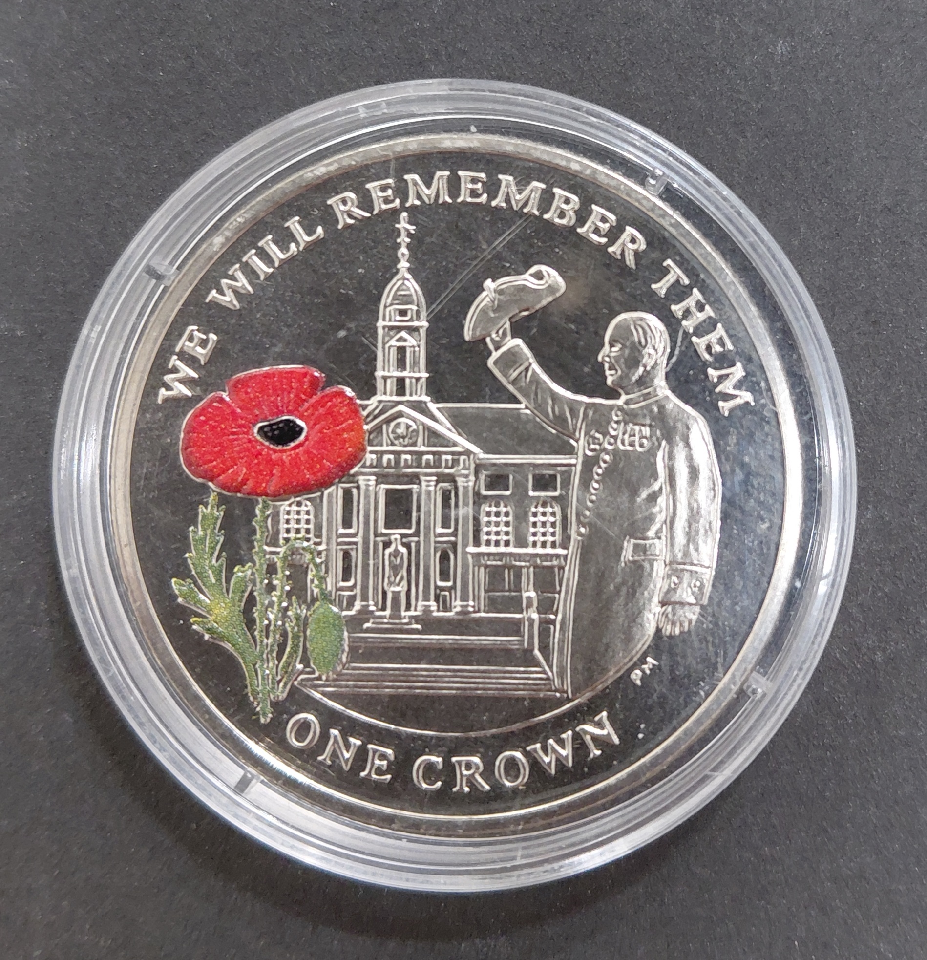 Islas Malvinas 1 Corona 2014 Centenario de la Primera Guerra Mundial Esmaltada KM177.1 Proof cantidad