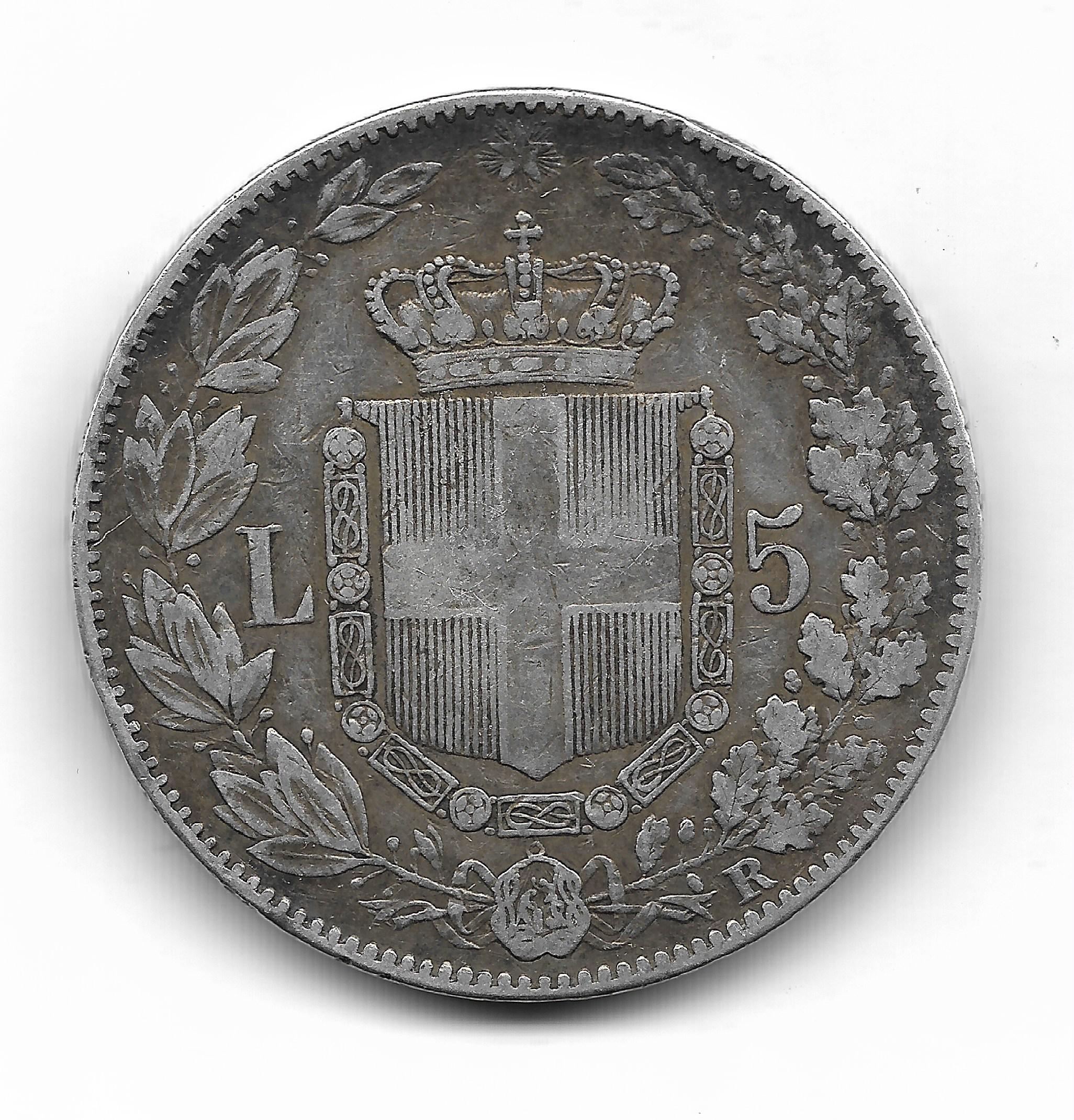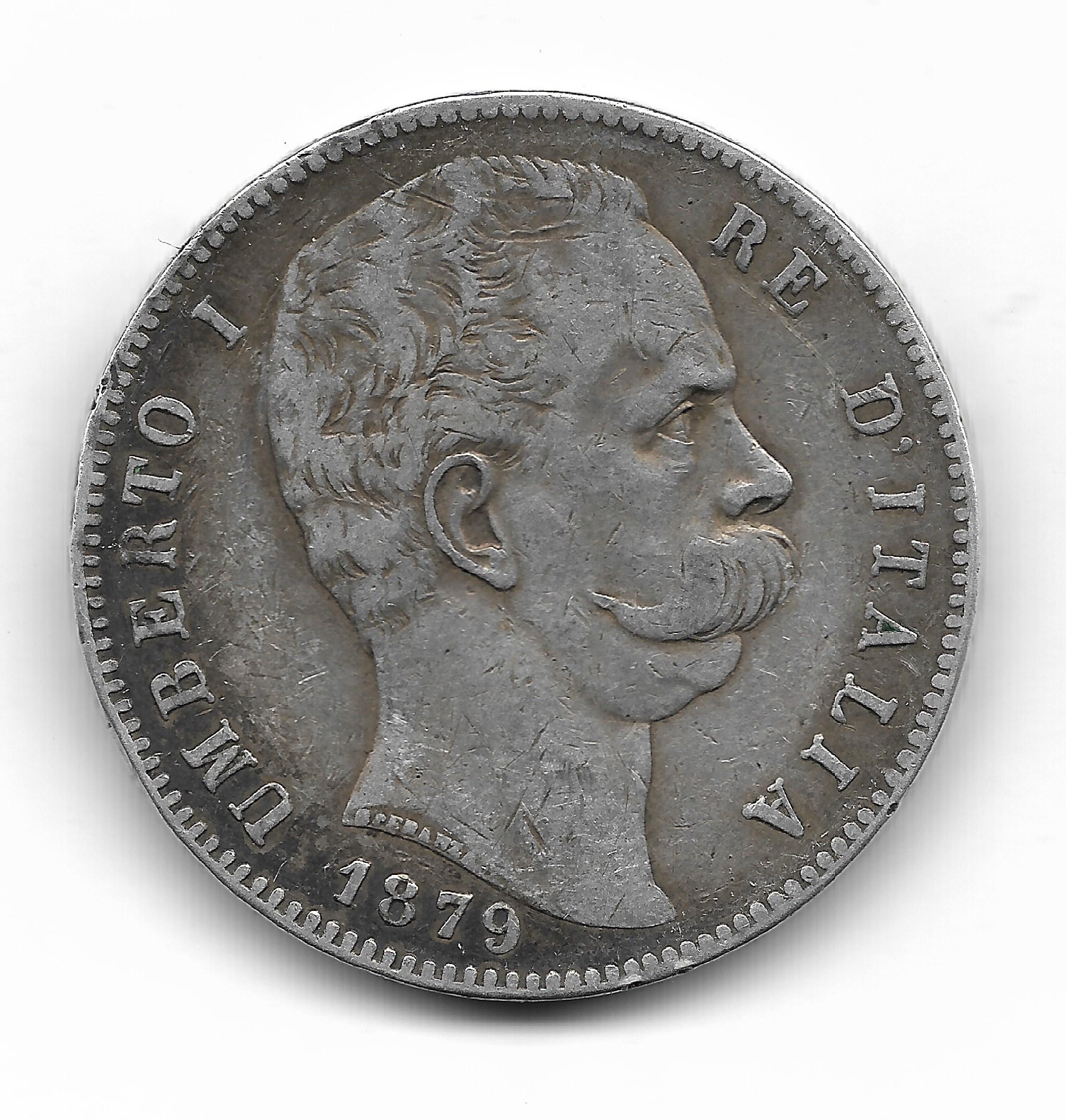 Italia 5 Liras de Plata 1879R KM20 MB+ cantidad
