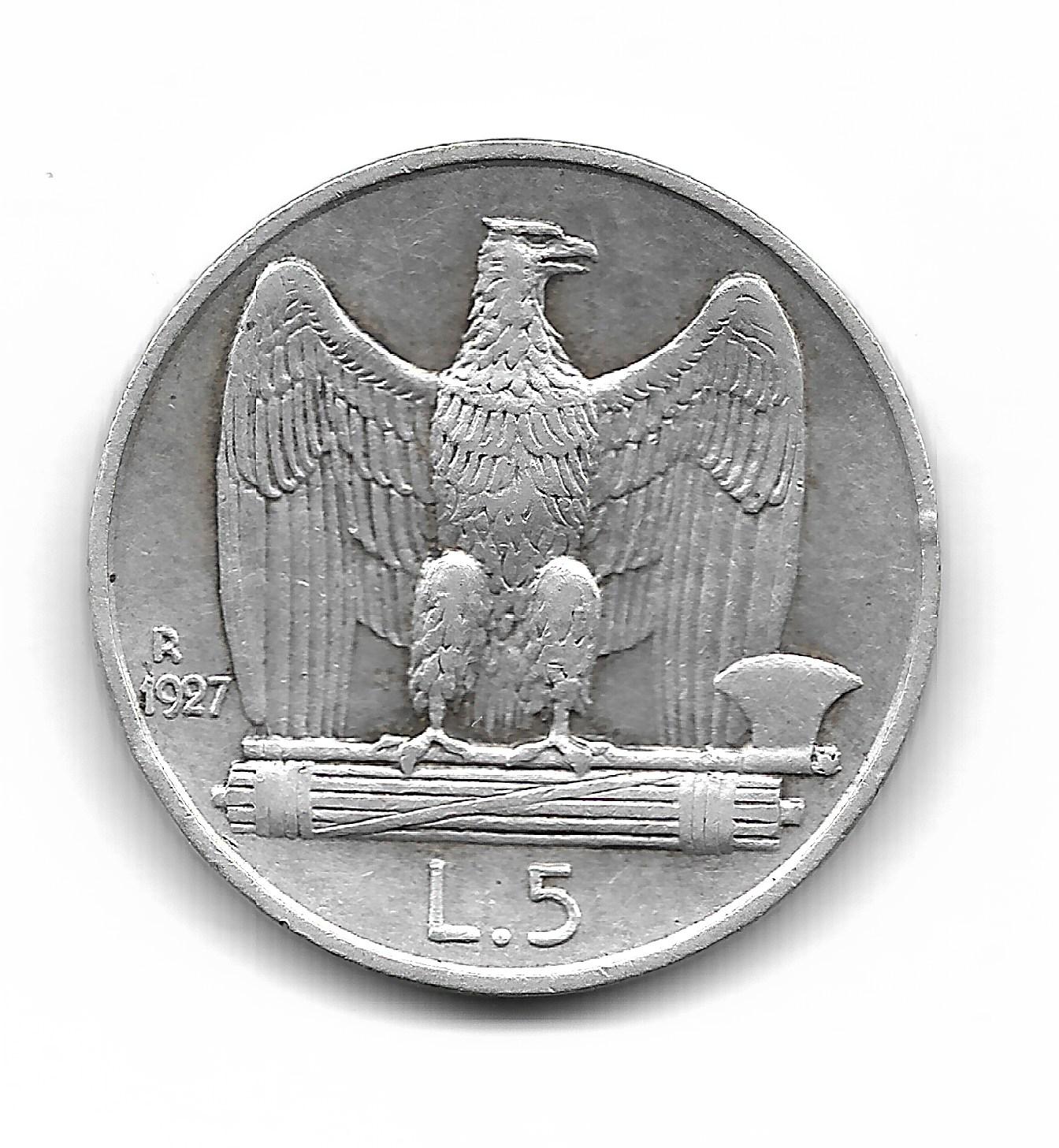 Italia 5 Liras de Plata 1927 KM67.2 **FERT MB+ cantidad