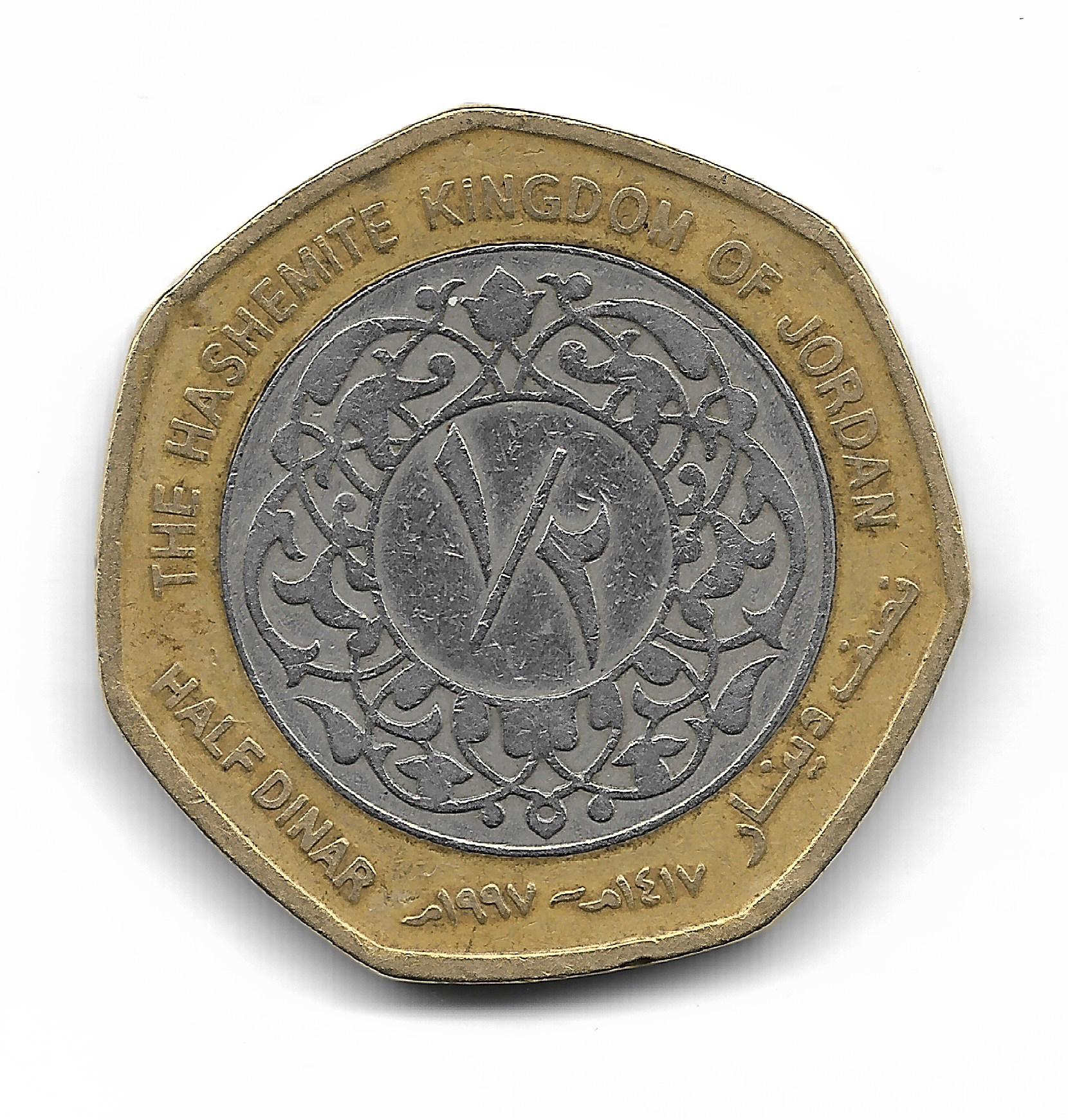 Jordania 1/2 Dinar 1997 KM63 MB+ cantidad