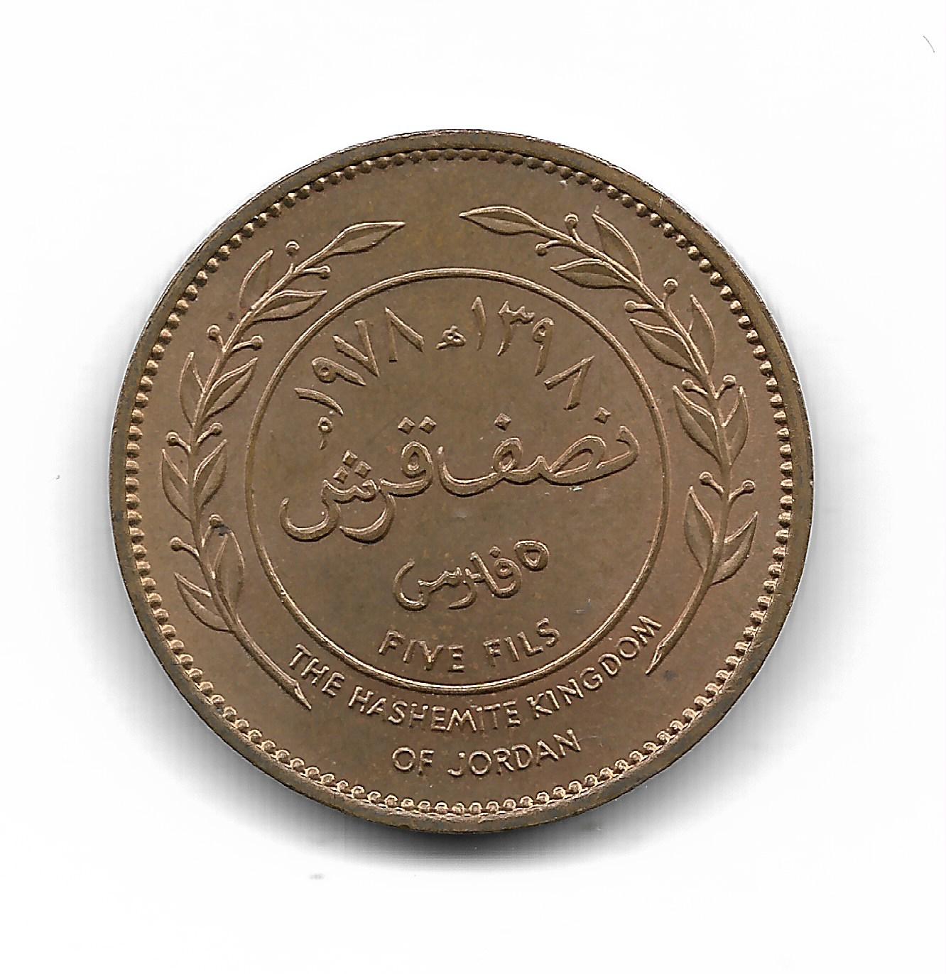 Jordania 5 Fils 1978 KM36 SC cantidad