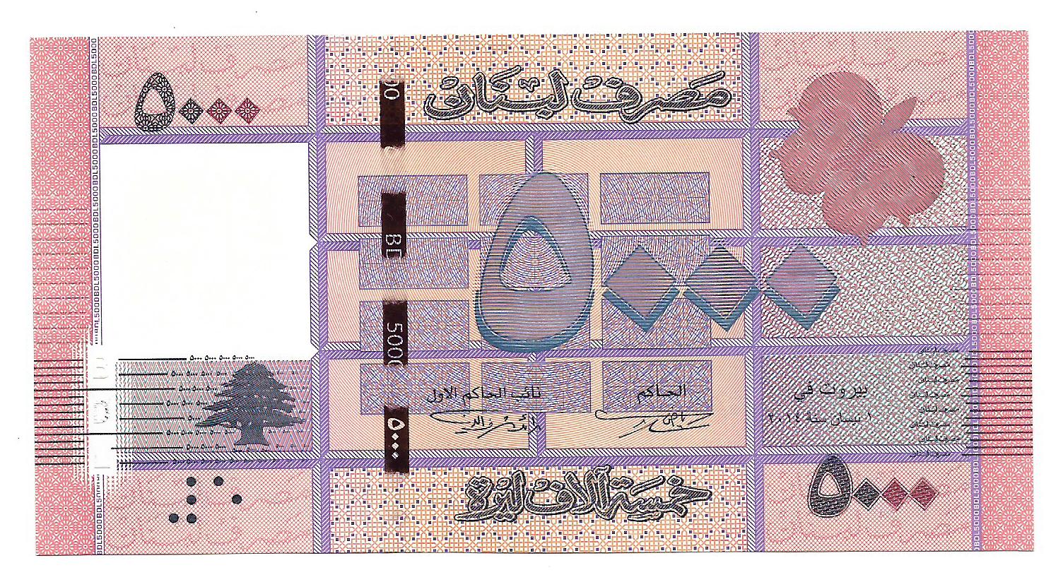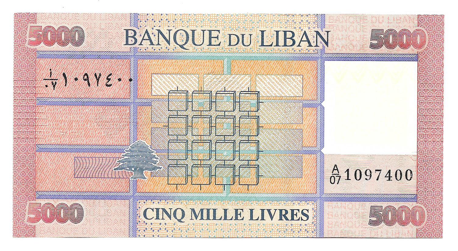 • Libano 5000 Libras 2014 P91 SC