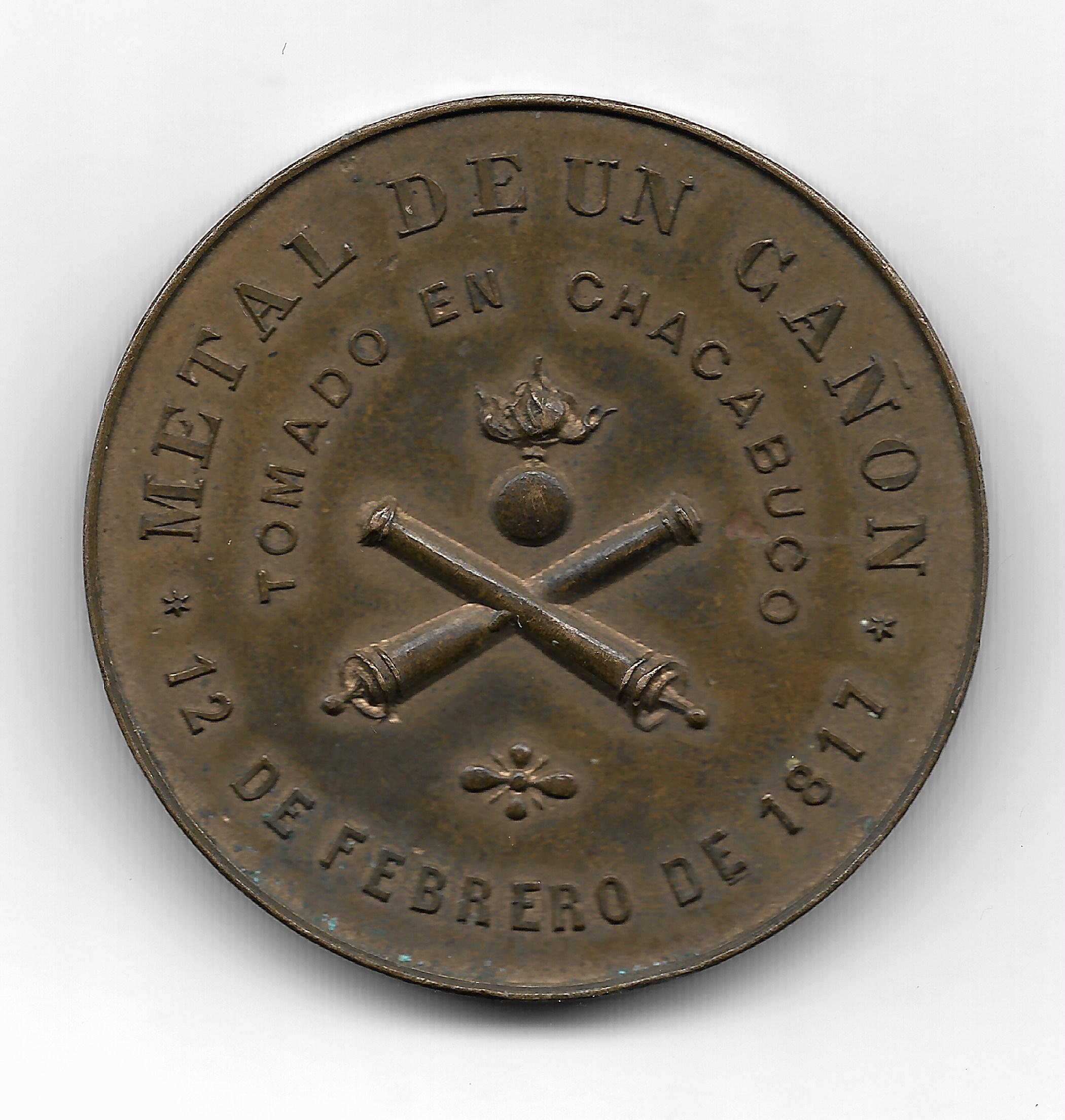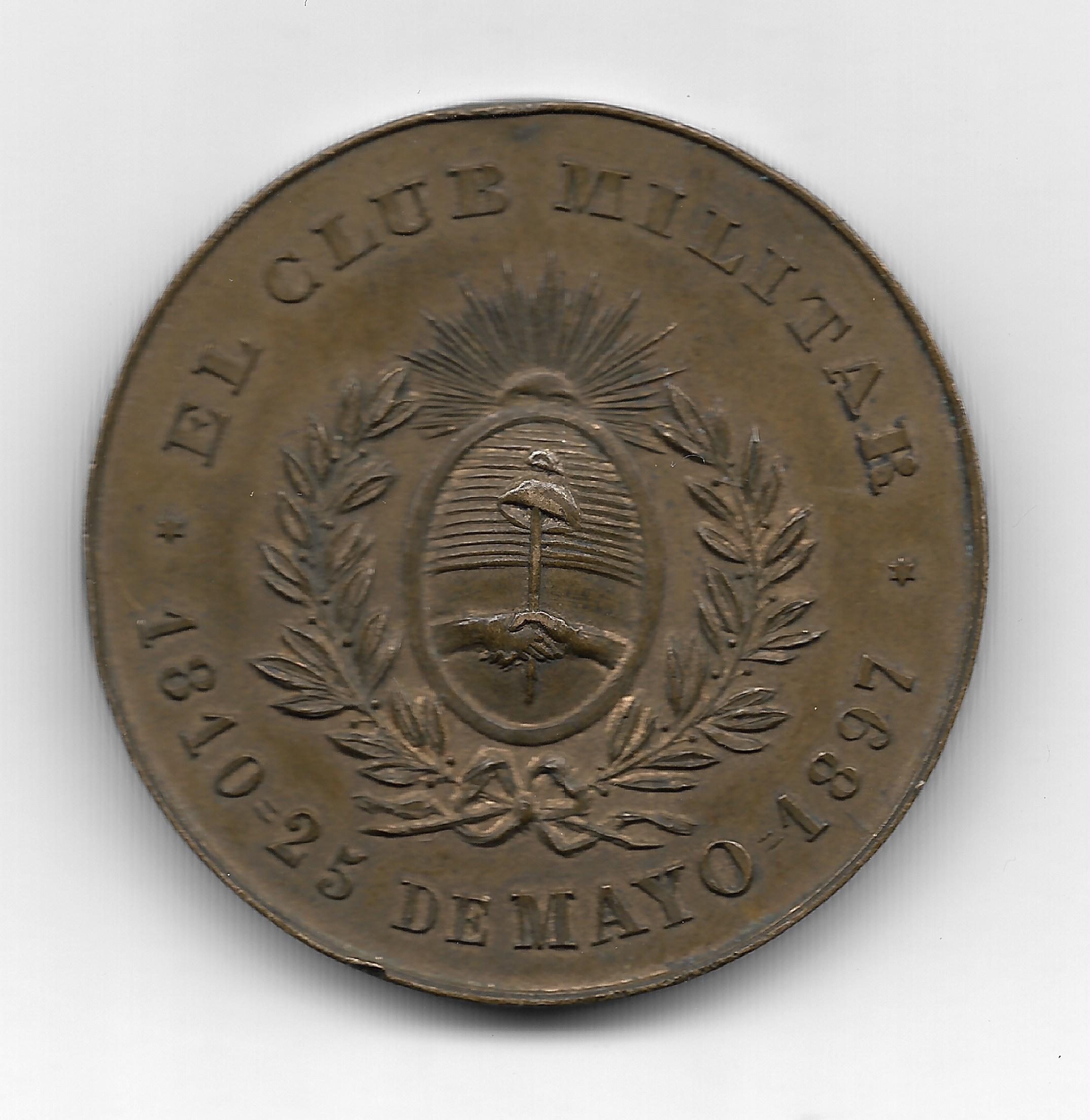 Medalla El club Militar 1810-25 de Mayo-1897 Hecha con Metal de un Cañon Tomado en Chacabuco en 1817