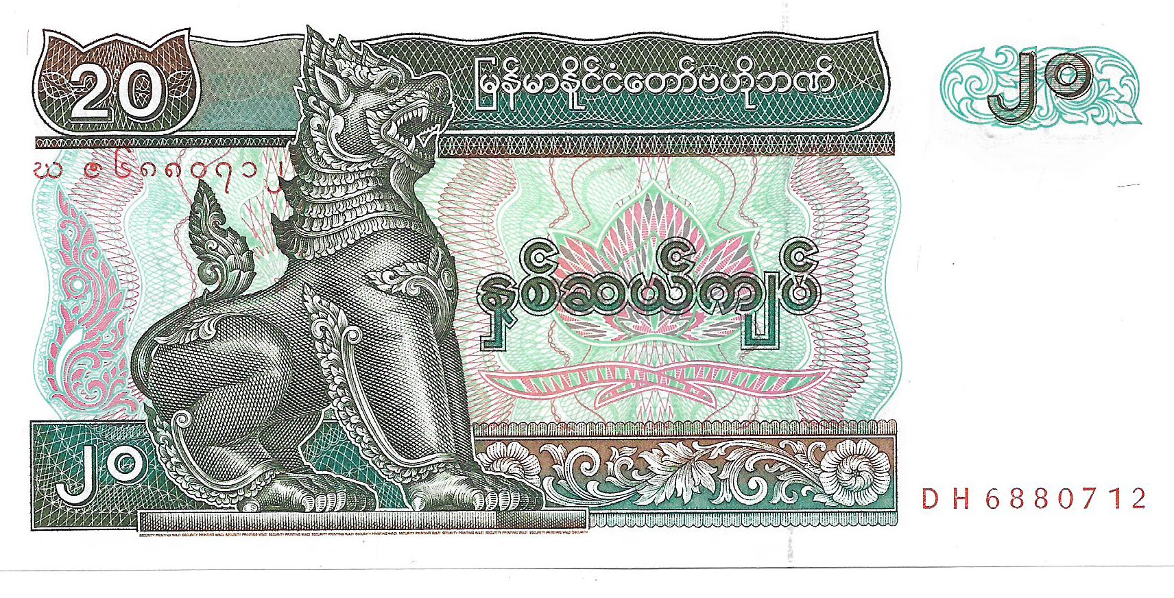 Myanmar 20 Kyats 1994 P72 SC - Imagen 2