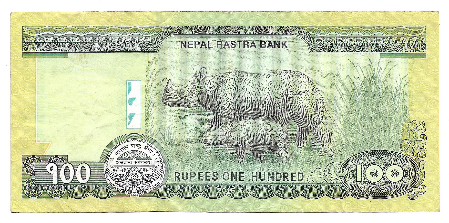 Nepal 100 Rupias 2015 Rinoceronte P80a EXC cantidad