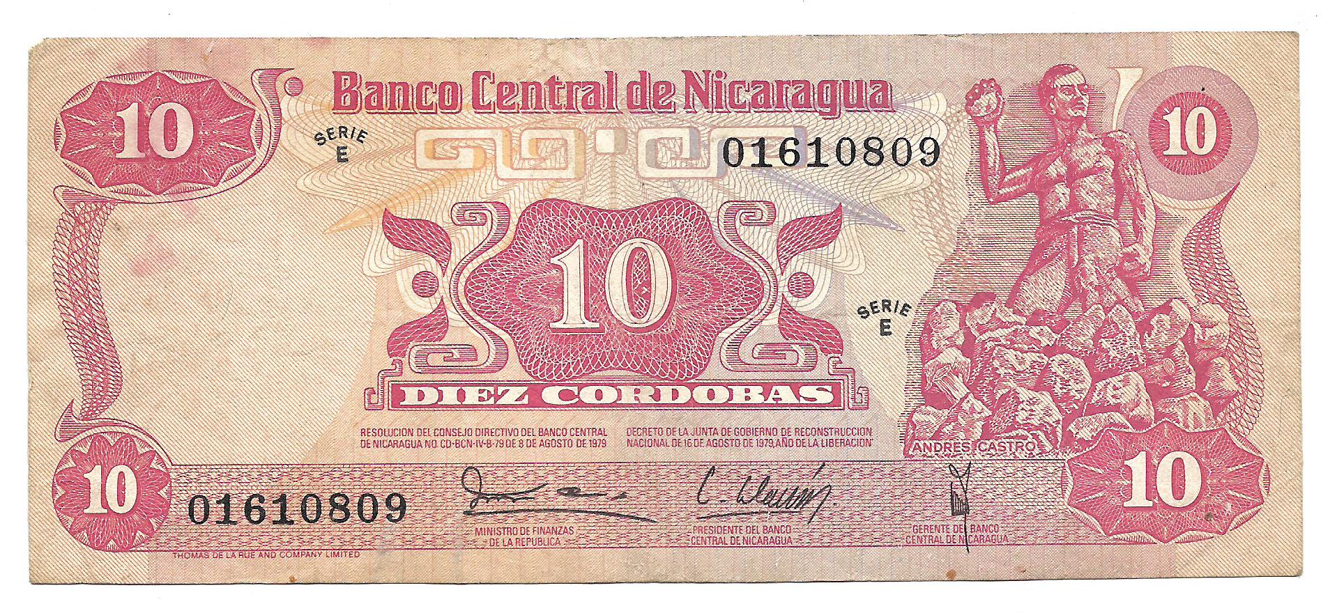 Nicaragua 10 Cordobas 1972 P134 MB+