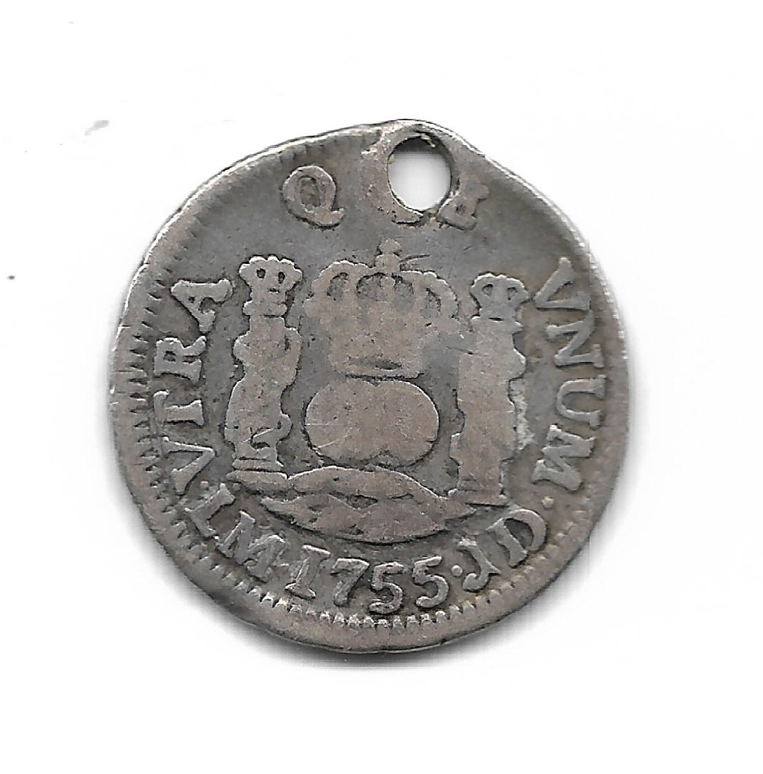 Peru 1/2 Real de Plata Columnario 1755 J.D Fernando VI KM51 MB-