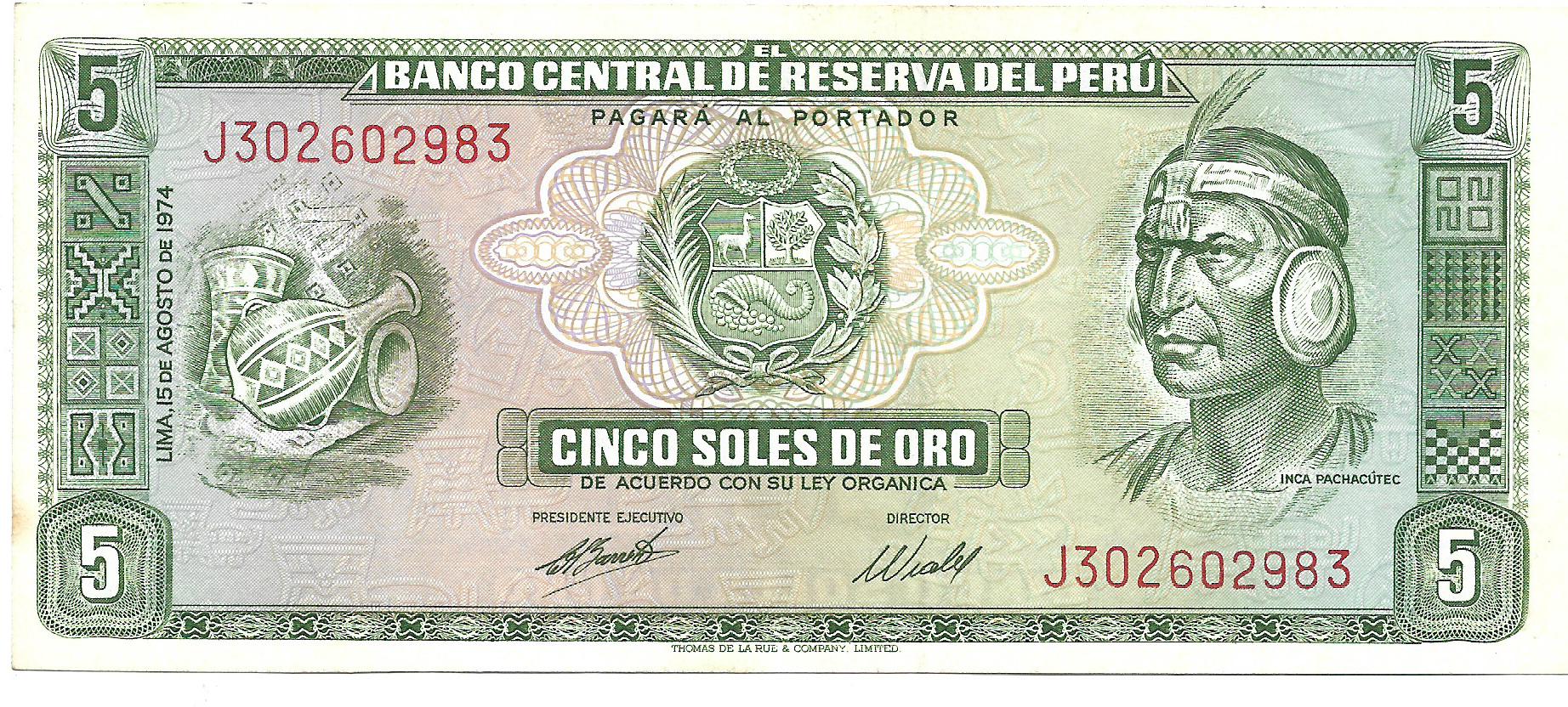 Peru 5 Soles de Oro 1974 P99c SC - Imagen 2